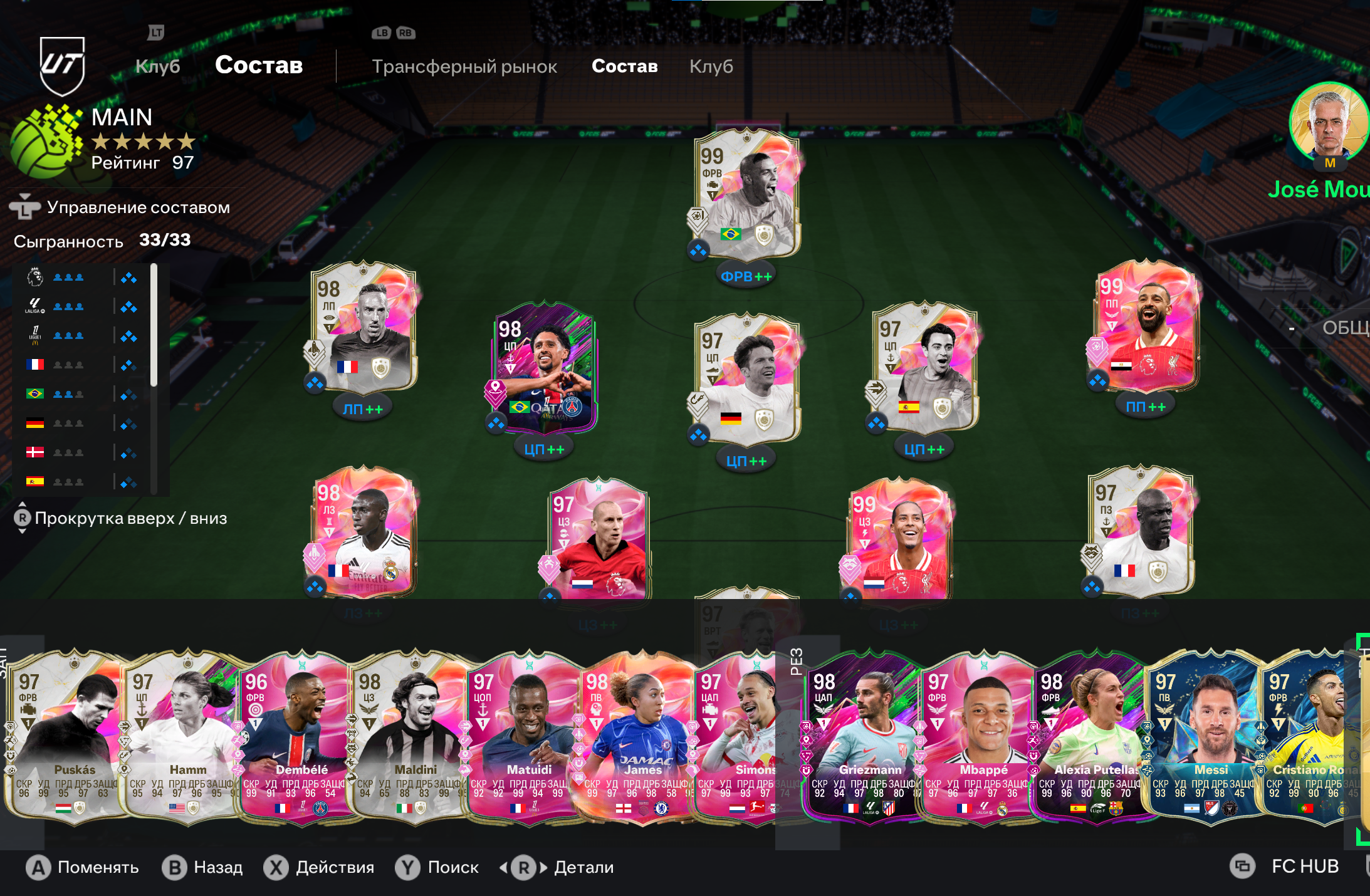 Привет, пчелы. Наконец-то смог добраться к вам. Очень скучал. Какое-то отвратительное послевкусие от этой части параши. Особенно платные эво и теперь еще в платной игре платный баттлпасс. Сейчас основа приблизительно выглядит вот так. Жду сегодня эво на мбаппу, который в субботу выпал, вот это удача.