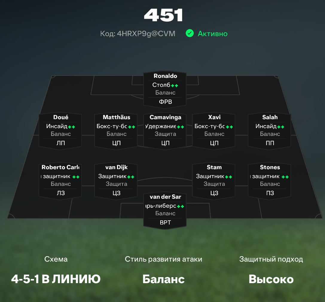 У меня так сейчас, хочу направо Месси прокачать в том эво, где ты Мбаппича. На Нея есть еще неплохое эво, но там не бустится скорость, но хотя у него золотой рапид, так что хз, может и надо сделать. Кстати, Дибала машина, в 16 играх 18 голов наколотил. У меня он на выдвинутом с универсальностью, то есть в центре не стоит, постоянно смещается вдоль штрафной. Но при этом надо одному крайнему нападающему давать инсайда на балансе, другому на атаку, и тогда всё нападение хорошо распологается при атаке.