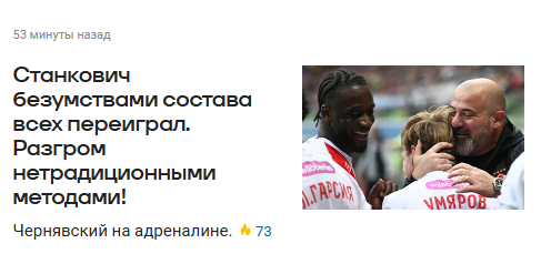 Проиграл как Дерьнамо цскалу как Личку отмазывают после отсоса на шпротс, даже кукарекают,что 3 -е место прошлого года -оверперформанс. Дескать состав не тот. Ну да, у ментов состав минимум третий в стране. Даже просрочка, которая первой уверенно идёт, уступает, у них, например, тупо лавки нет и ротация 14 человек в лучшем случае. Про нищий и поломанный цскал и блохо говорить нечего