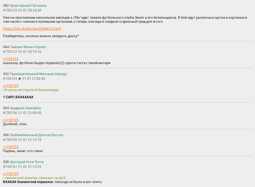 Чет проигрываю с этого нытья бомжечурок. Это же надо прибегать на фтб, где никто футболом не интересуется, и целыми днями визжать о том какое же зинит не говно.