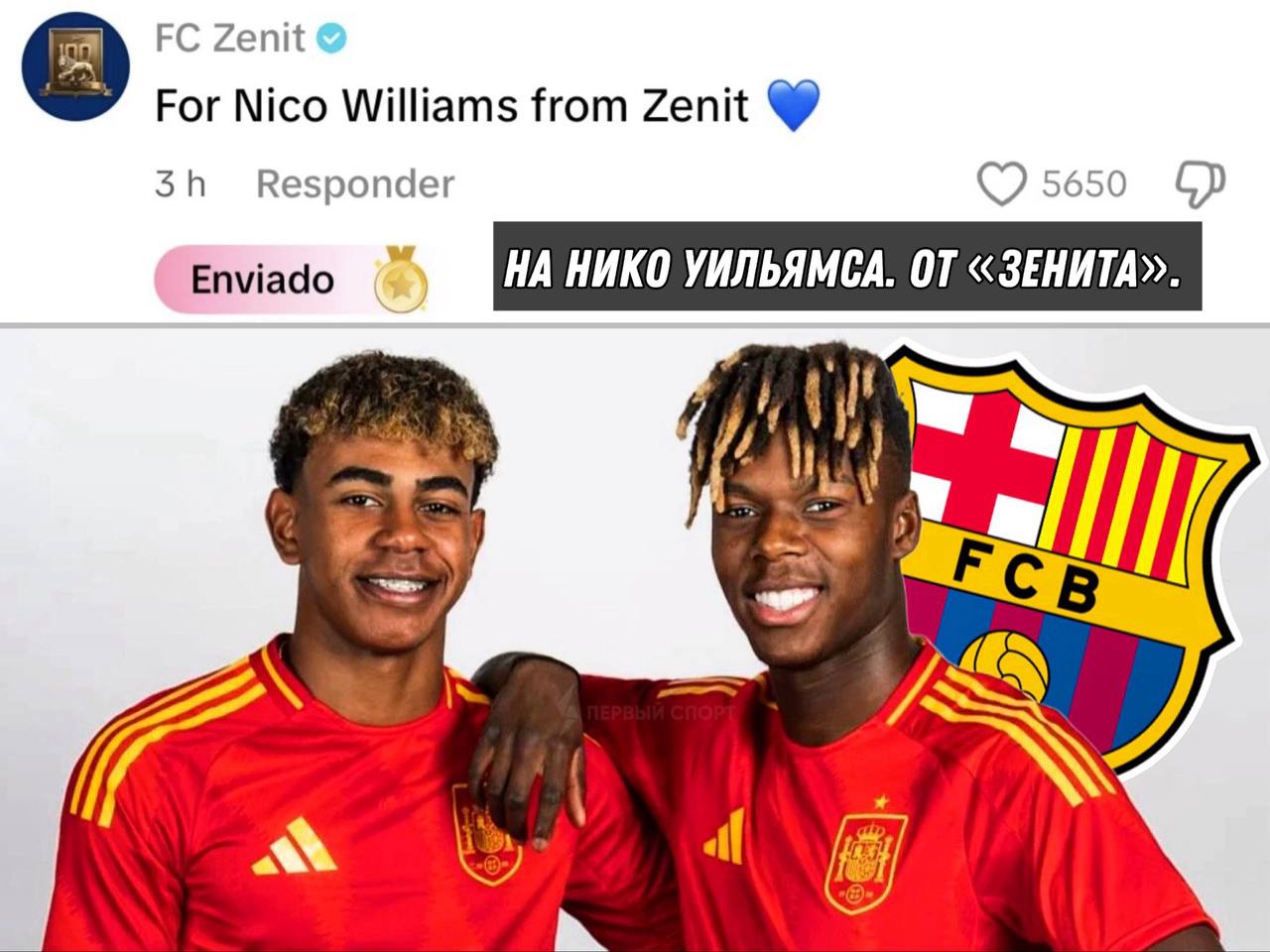 «Зенит» задонатил «Барселоне» 541 рубль на трансфер Нико Уильямса: аккаунт петербуржцев в тиктоке отправил каталонцам платный подарок с подписью «На Нико Уильямса». Фанаты «Барсы», которой нужно «собрать» 58 млн евро на нападающего «Атлетика», оценили жест от «Зенита»: в ответ клубу РПЛ начали слать платные подарки «на трансфер Мбаппе». В итоге «Зенит» уже «заработал» больше, чем задонатил «Барсе».