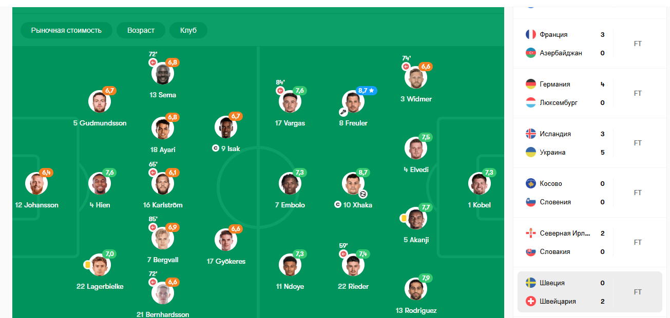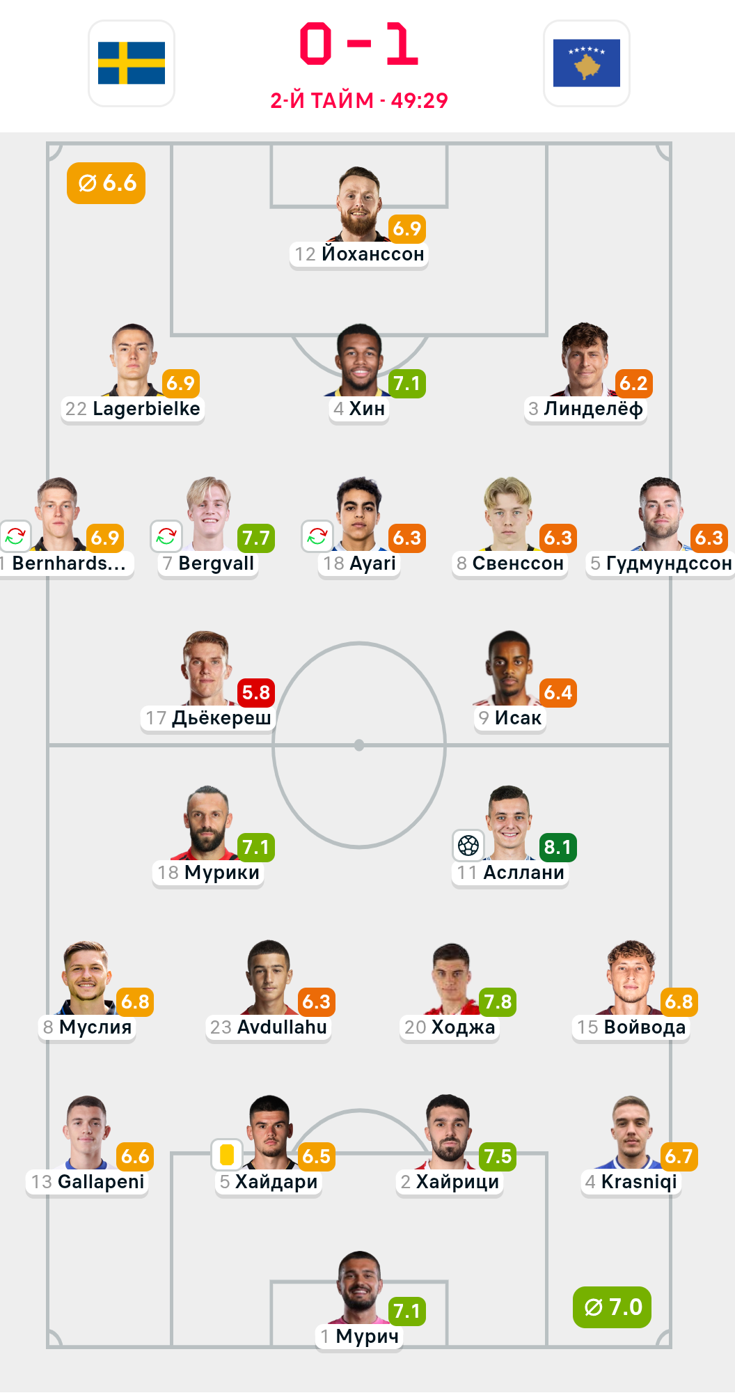 Швеция вышла на матч с «Косово» с Дьёкерешем и Александером Исаком в атаке. Эти футболисты, подписавшие контракты с «Арсеналом» и «Ливерпулем» соответственно, стали одними из самых обсуждаемых трансферов в Премьер-лиге — их общая сумма переходов составила 247 млн долларов.