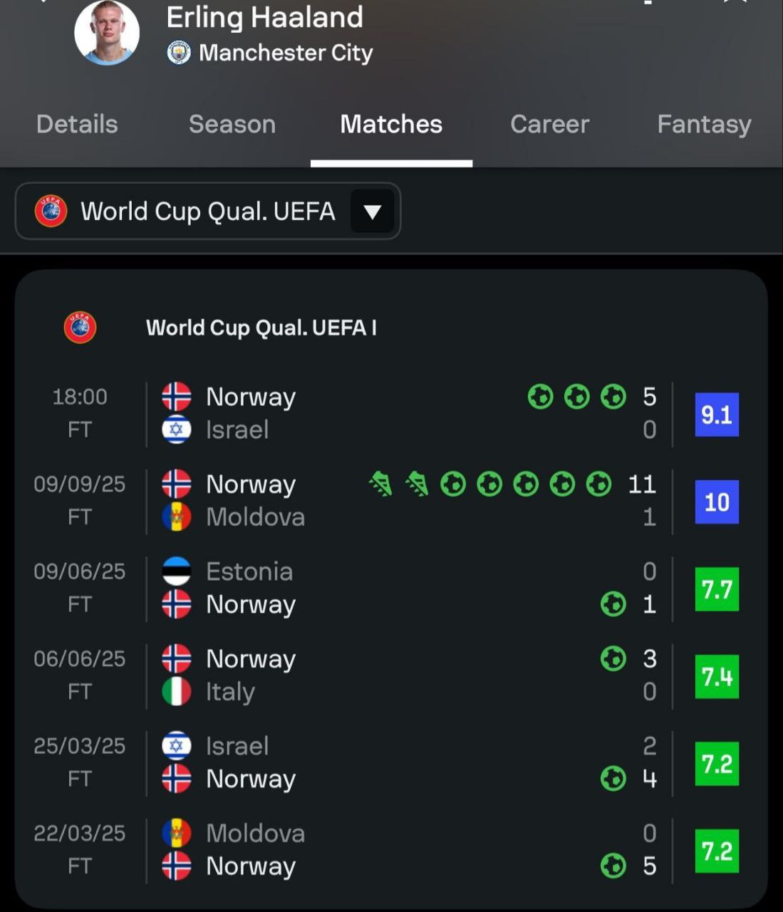 Этот мяч стал для 40‑летнего португальца 39‑м в матчах квалификации к ЧМ, по этому показателю он делит первое место с форвардом сборной Гватемалы Карлосом Руисом. Топ‑3 замыкает аргентинский нападающий Лионель Месси (36 голов).