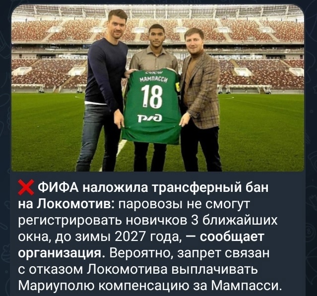 FIFA наложила трансферный бан на московский "Локомотив", потому что они отказались платить деньги несуществующему украинскому клубу "Мариуполь"