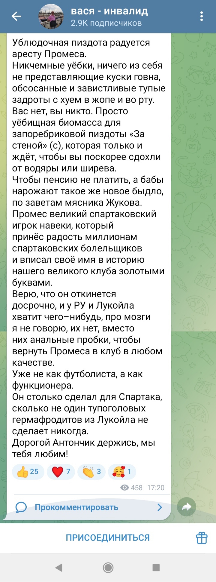 Промеса не жаль. Мнение Рабинера. Ущербный гандон. Иди отсоси хуй у Милера и Бородавочника. Мало тебе Киря ебальник набил. Тебя пидар не жаль, чтобы ты старше не стал, выблядок.