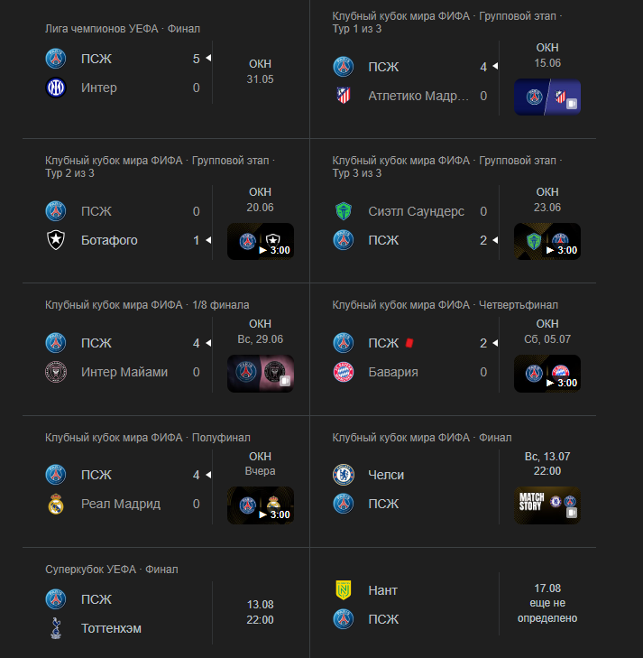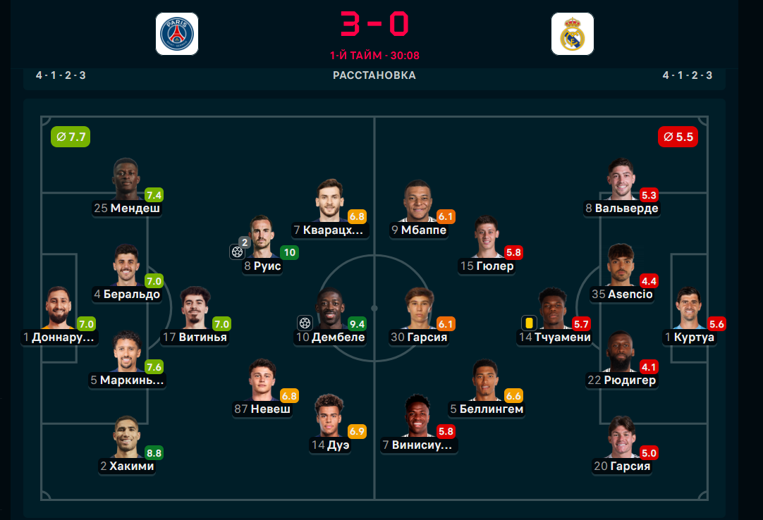 ESPN также отмечает, что капитан «Интер Майами» Лионель Месси создал больше явных голевых моментов за матч против «ПСЖ», чем весь «Реал»: 1 против 0.