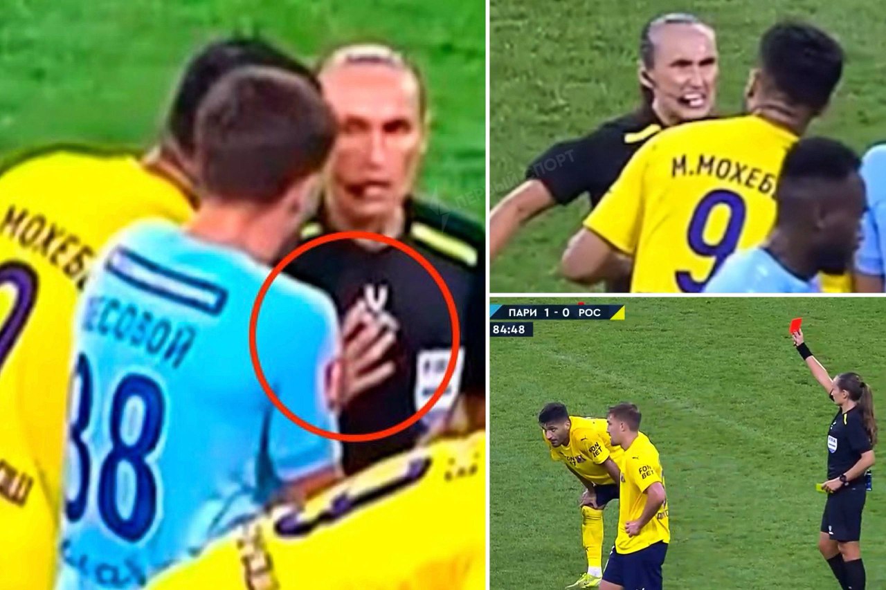 ⚡️ Футболист «Ростова» получил красную карточку за то, что потрогал грудь женщины-судьи: такого не было никогда за всю историю российского футбола. Мохеби не понравилось, что судья Опейкина отменила пенальти в пользу «Ростова» в матче Кубка с «Нижним»: иранец дотронулся до груди арбитра, споря с ней, после чего Опейкина разозлилась и тут же удалила Мохеби с поля