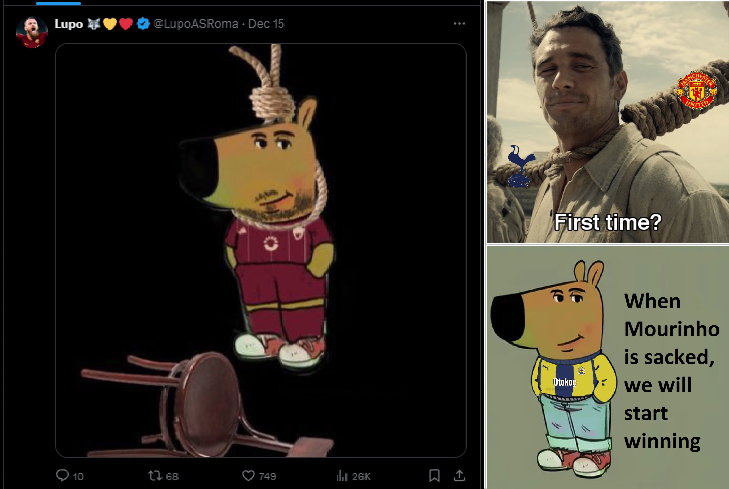 >Моуринью могут уволить из «Фенербахче» после вылета из Лиги чемпионов – вчера его команда проиграла «Бенфике» >Ранее Жозе говорил, что после отъезда из Турции никогда не станет работать с клубами, играющими в турнирах УЕФА, и будет ждать предложений из нижней половины таблицы АПЛ Унижениям физрука и его подсоса нет предела.