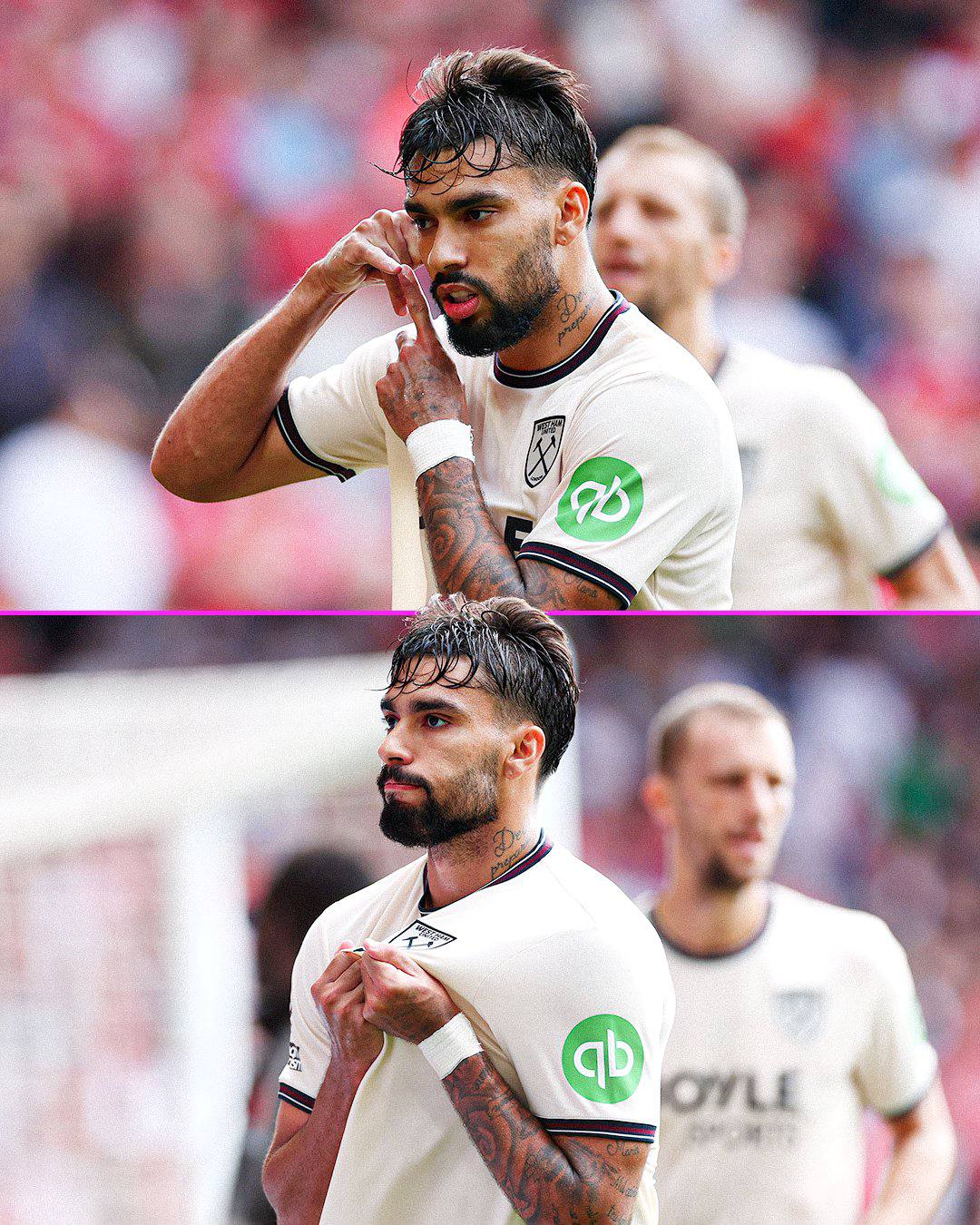 На фоне слухов о переходе в Астон Виллу, Лукас Пакета отпраздновал гол жестом звонящего телефона, после чего "бросил трубку" и поцеловал эмблему Вэст Хэма.