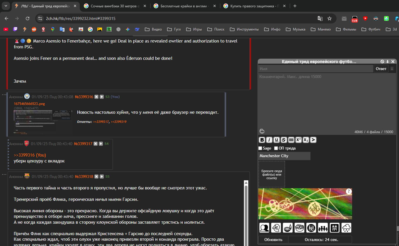 >>3399456 >Баварец, ты доволен усилением? Да уже похуй кого, главное – подпишите. Ушло три игрока атаки, ещё один сломался минимум на полгода, взамен берём одно лишь Диаса, заебись трансферная политика. А про пиздец в защите мы вообще тактично забудем.