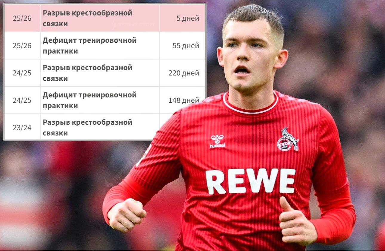 Футболист «Кёльна» порвал «кресты» 3 раза за 18 месяцев: защитник Лука Килиан был здоров всего 11 дней из последних 532. Лука Килиан порвал «кресты» в прошлом марте, восстановился на 1,5 недели, порвал «кресты» в декабре и, проводя одну из первых тренировок, опять порвал «кресты» на этой неделе. К 26 годам Лука получил уже 12 травм, из-за которых пропустил больше двух лет своей карьеры.
