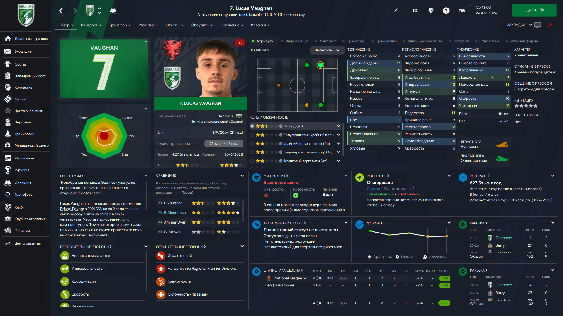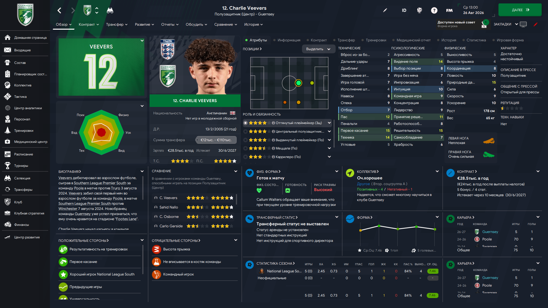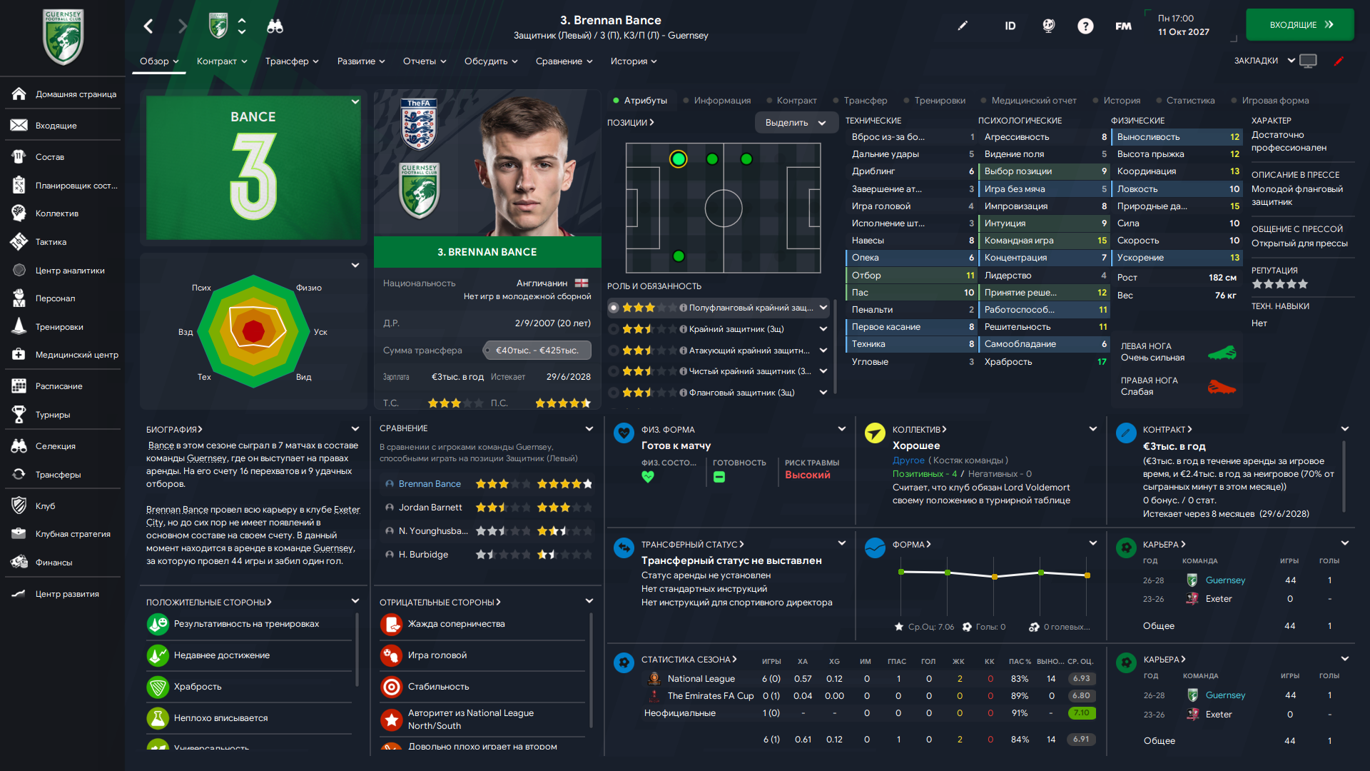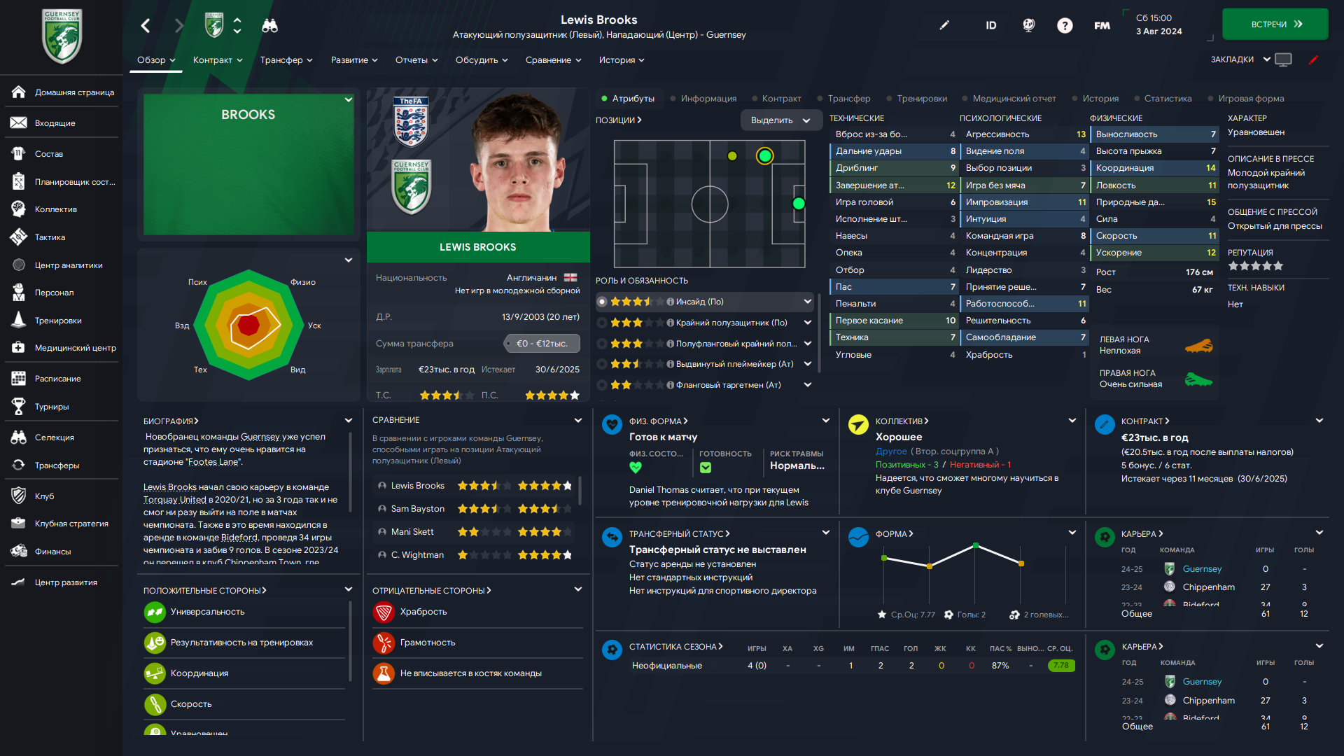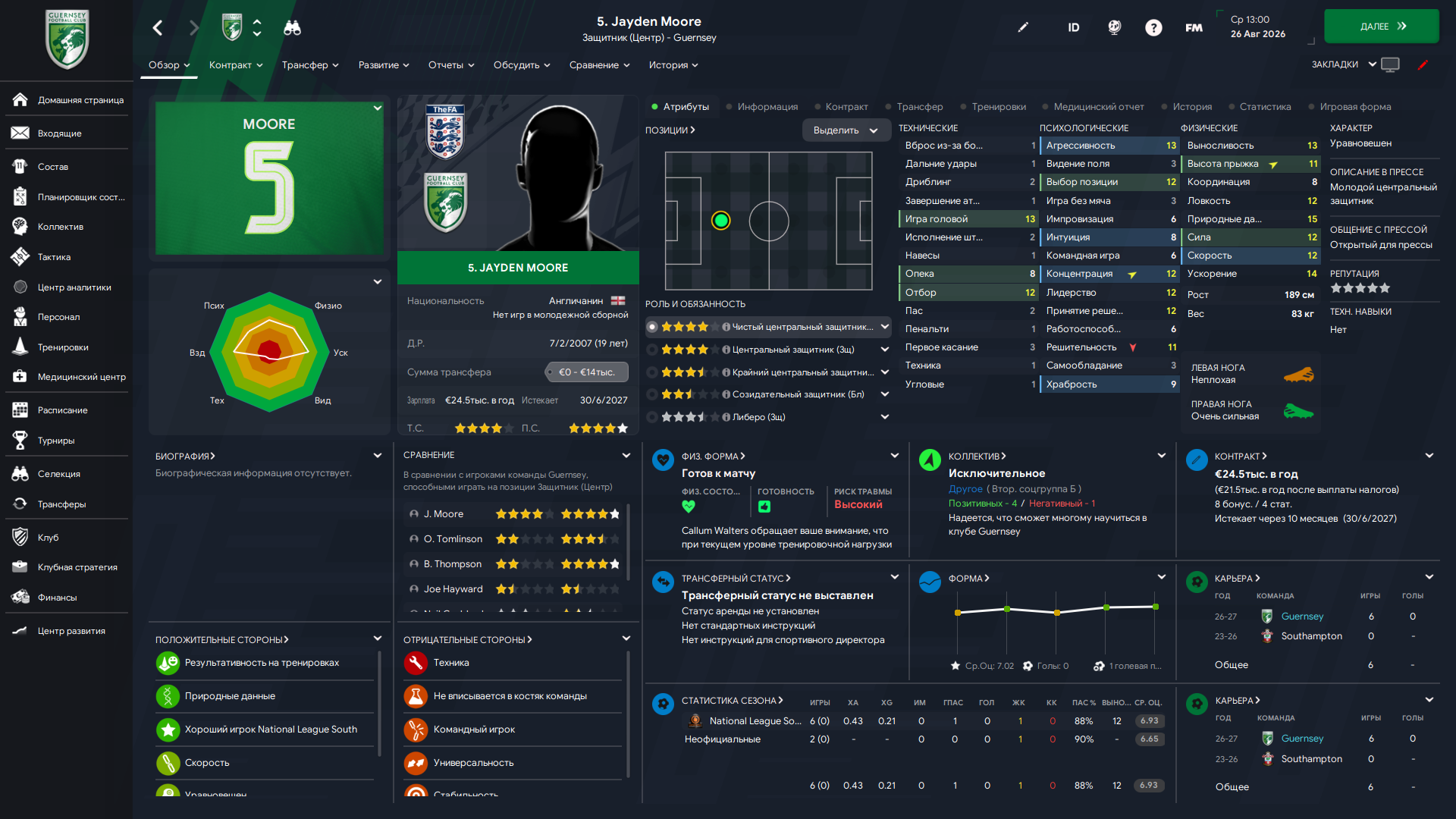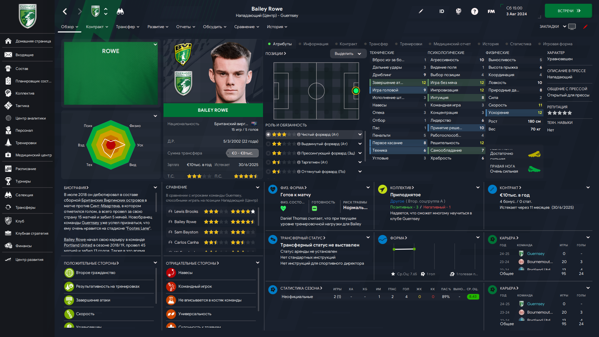 Физически развит, остальное наработаем, надеюсь. Сделал 14 ассистов в 7 дивизионе, к нам перешёл почти за 6 тысяч евро.