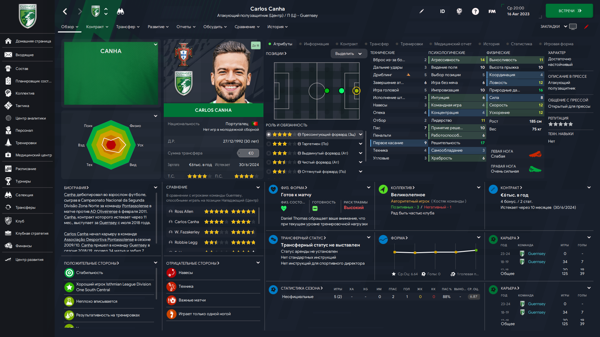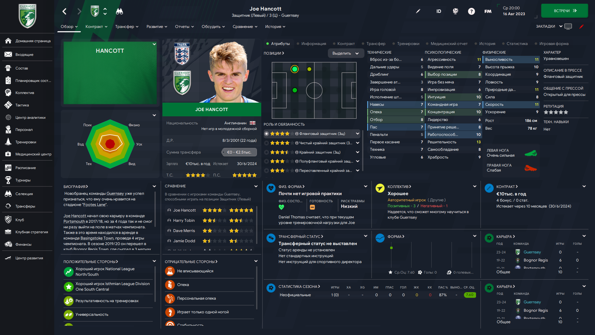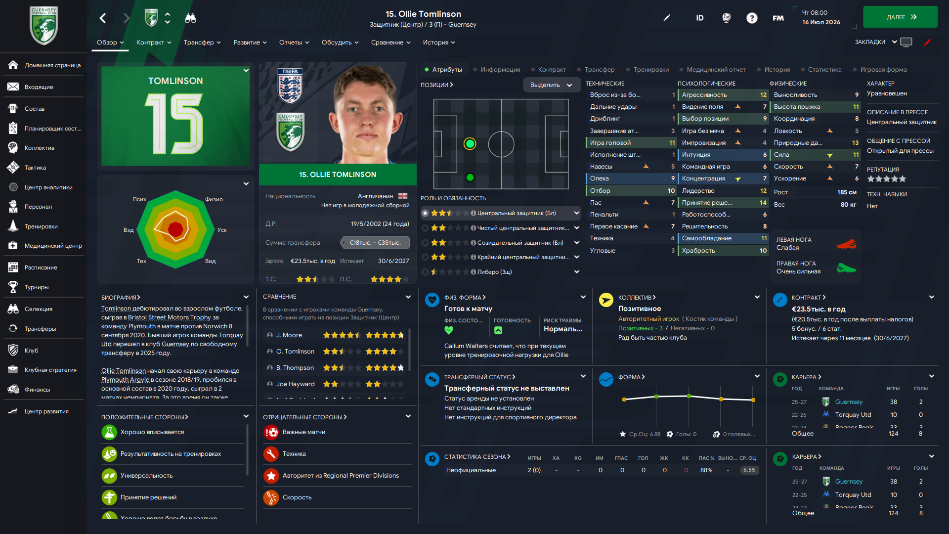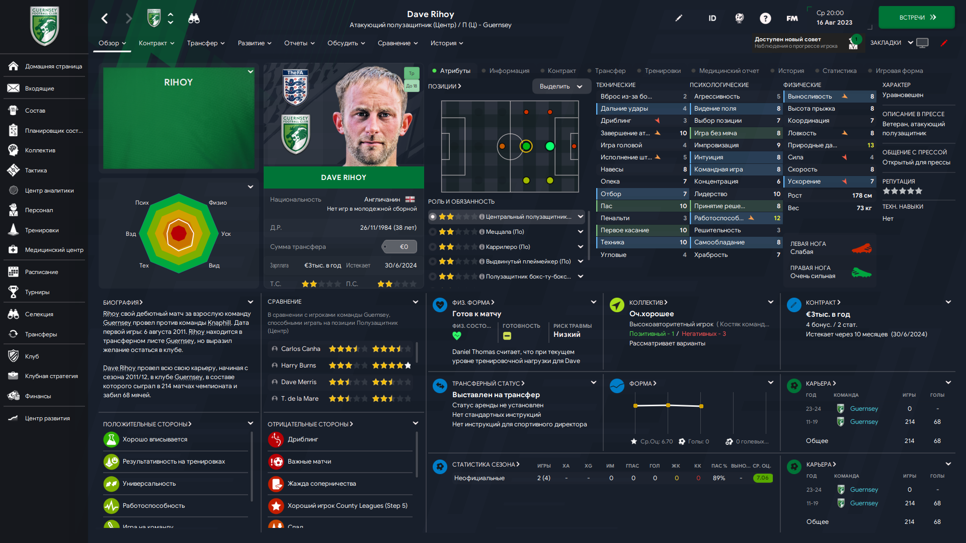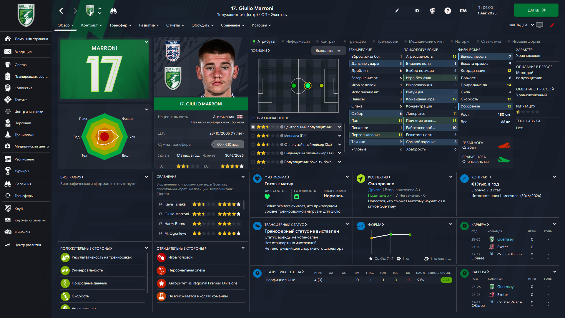 Физически развит, остальное наработаем, надеюсь. Сделал 14 ассистов в 7 дивизионе, к нам перешёл почти за 6 тысяч евро.
