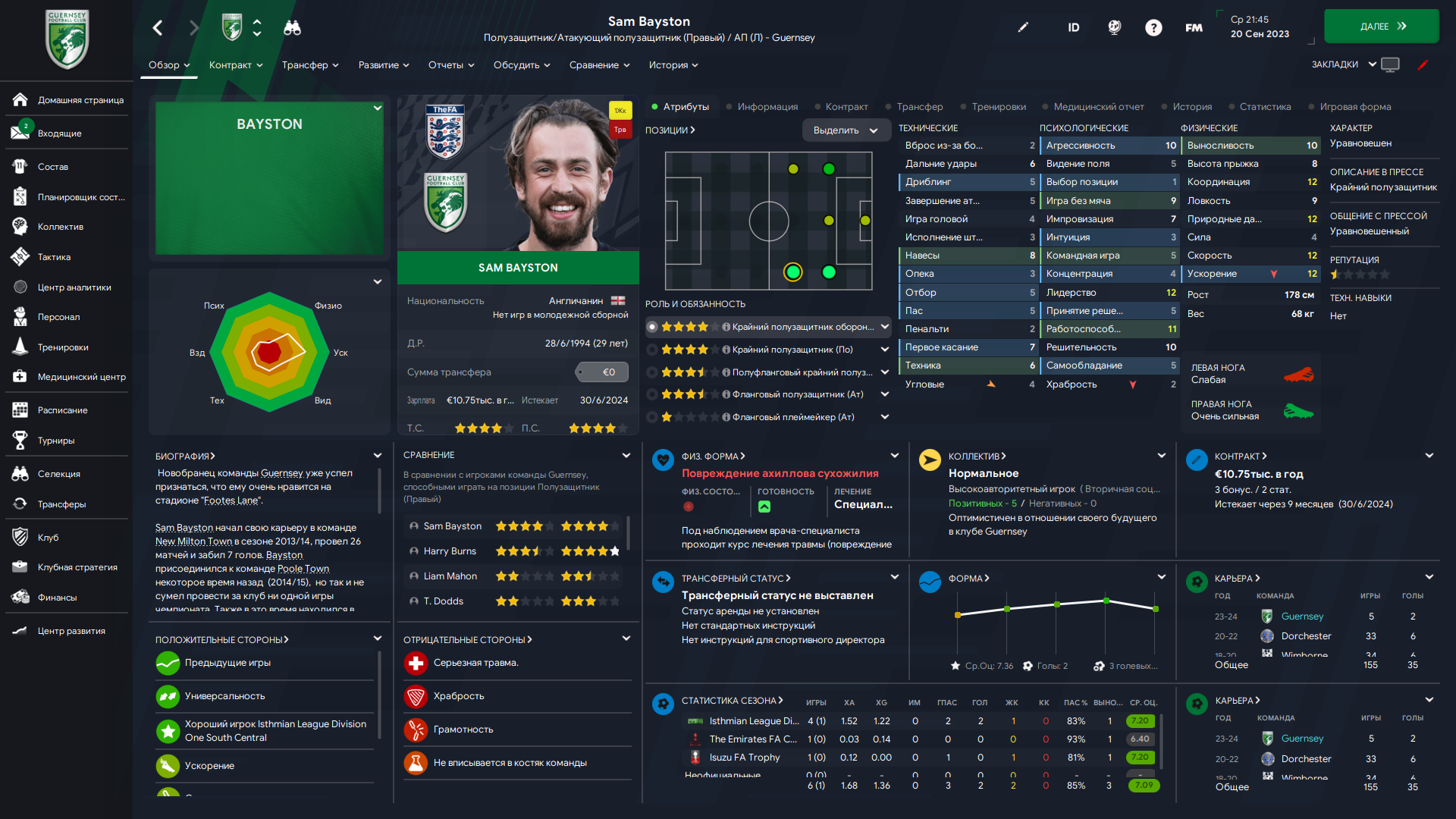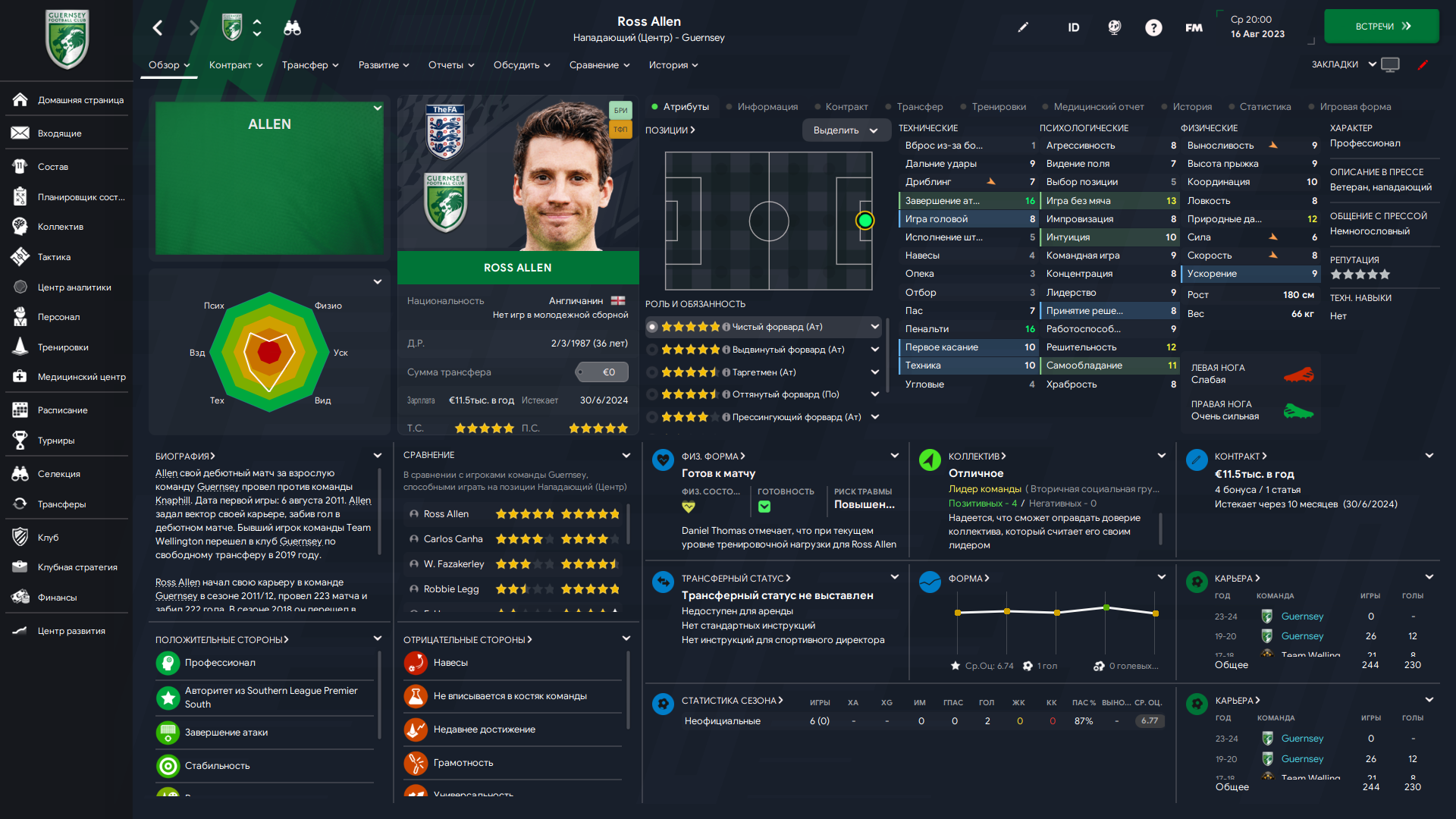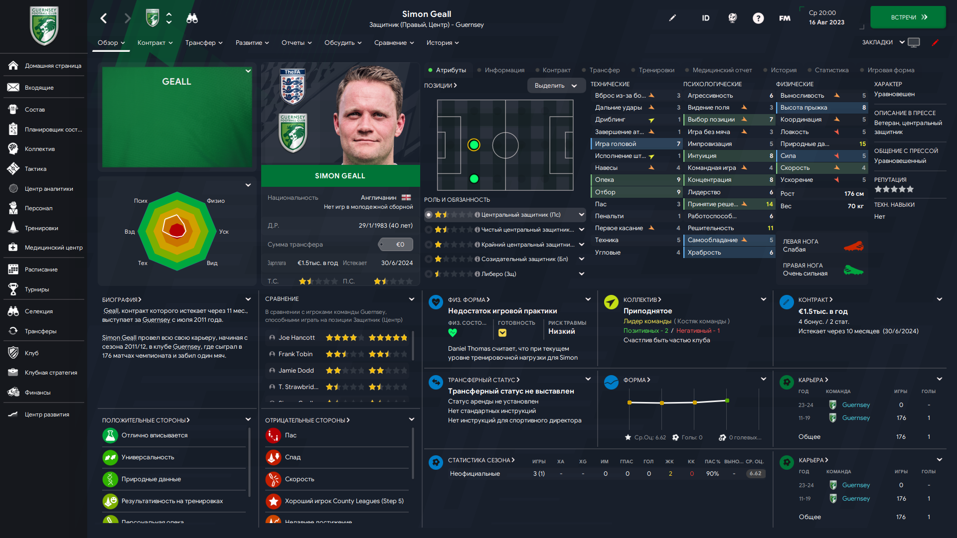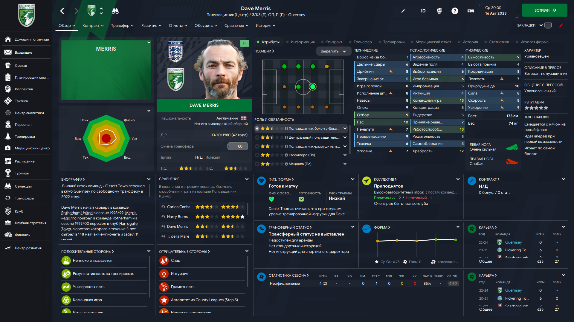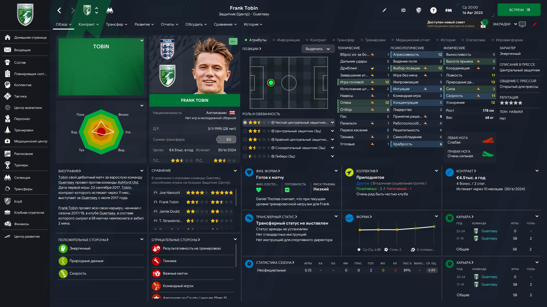Физически развит, остальное наработаем, надеюсь. Сделал 14 ассистов в 7 дивизионе, к нам перешёл почти за 6 тысяч евро.