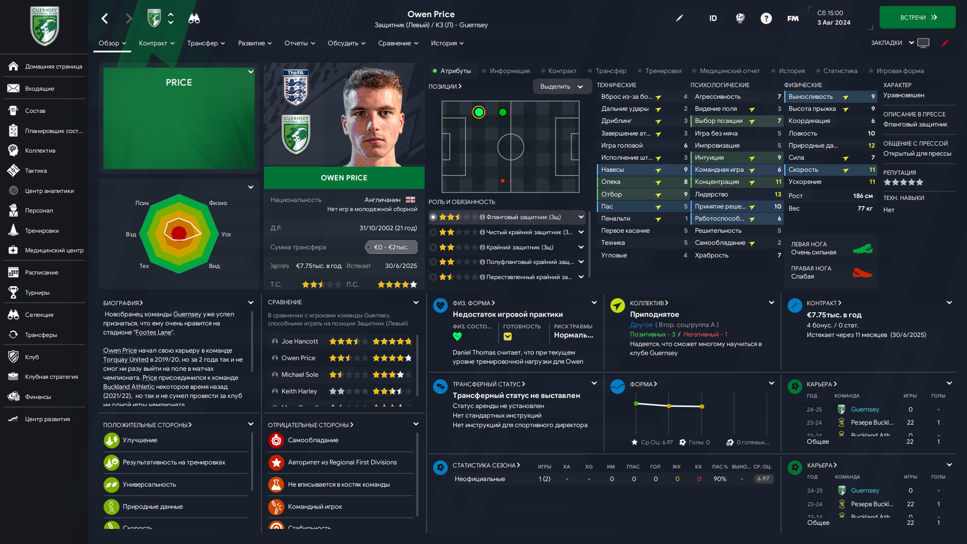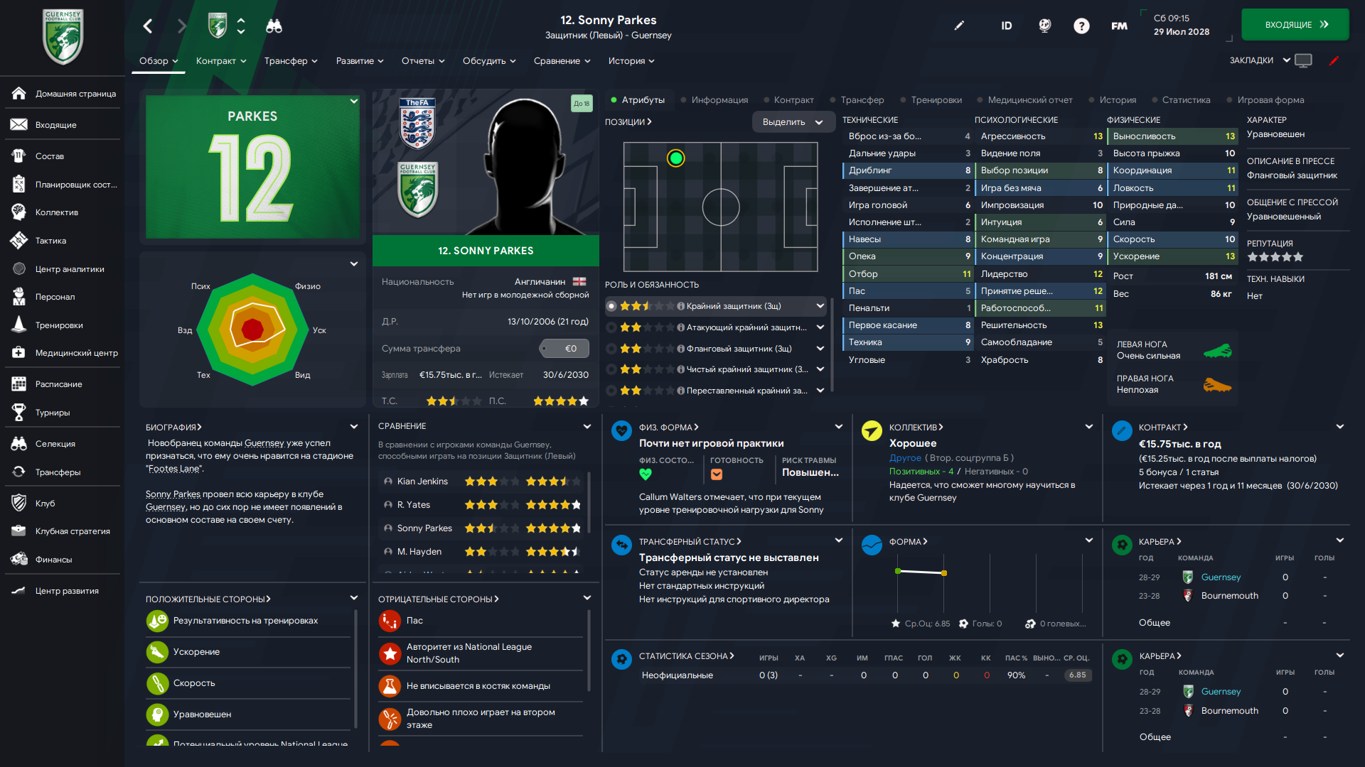 Да, вот настолько всё было плохо с ЦЗ, что пришлось возвращать этого косячника. Зато свой, проверенный, левоногий. Плюс мы выждали и взяли его играть за пачку сухариков, что не может не радовать. Но, к сожалению, пришлось снова платить за трансфер - 7 тысяч. Три года назад его же покупали за 6, растёт.