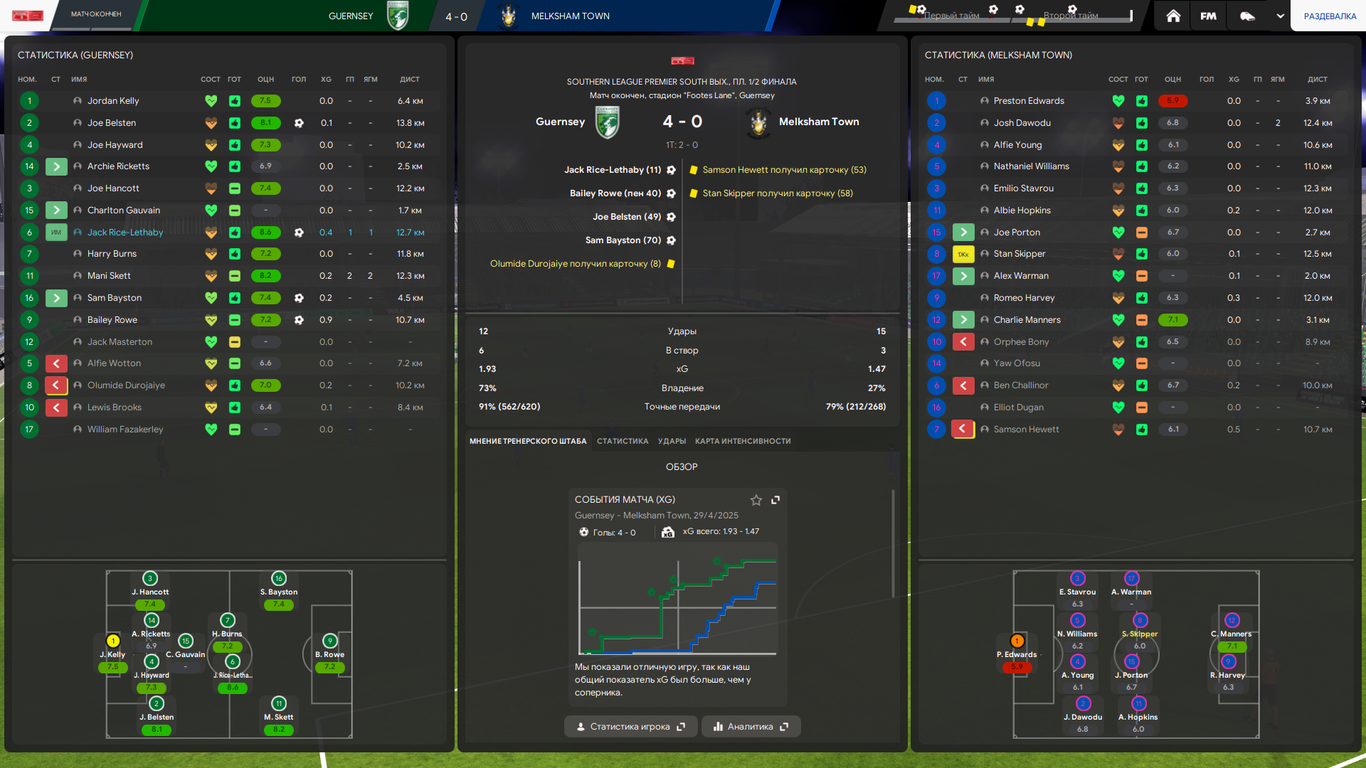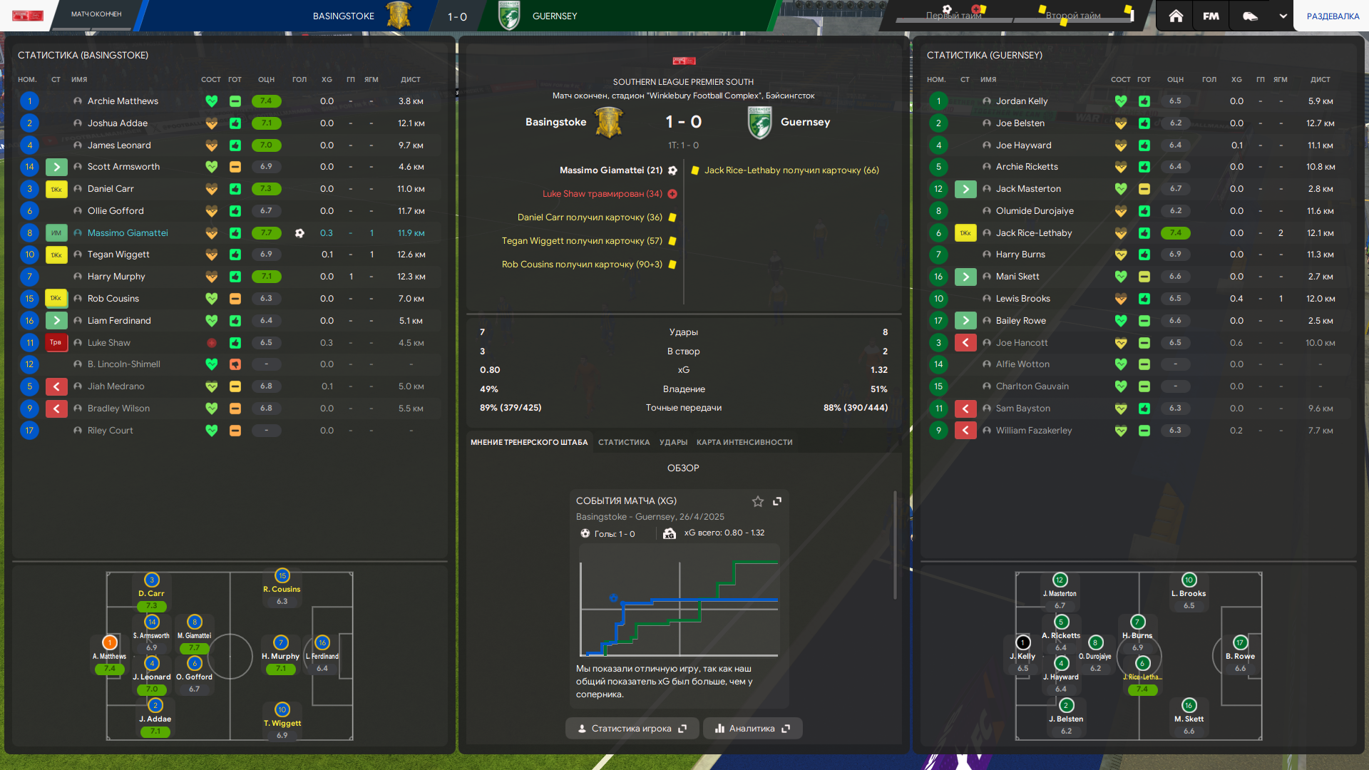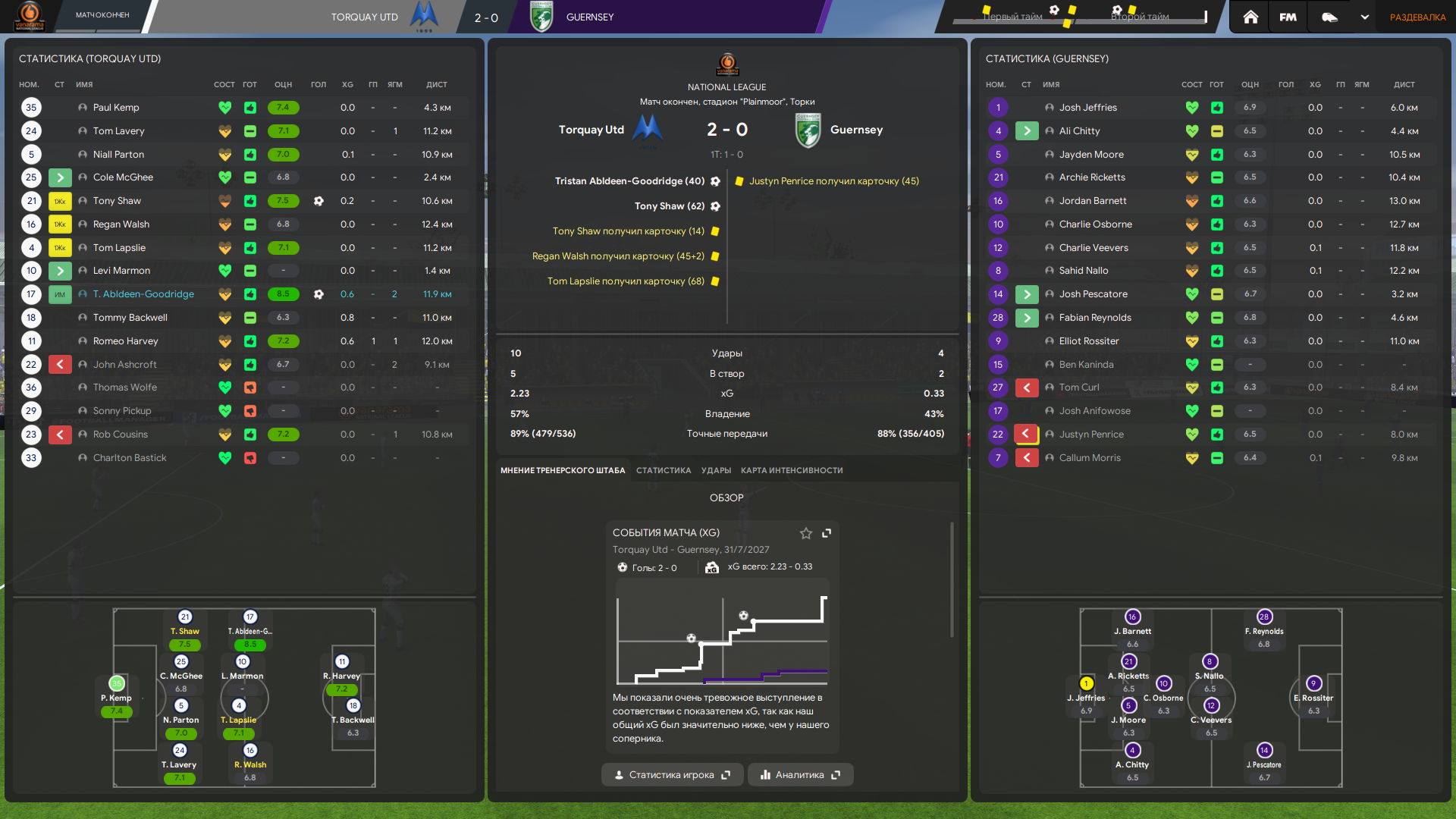 Тренерский штаб у меня топовый по всем показателям в лиге, но тоже не думаю что это решает. Это скорее влияет на тренировку и скорость прокачки футболистов, а не на сам результат игры непосредственно.