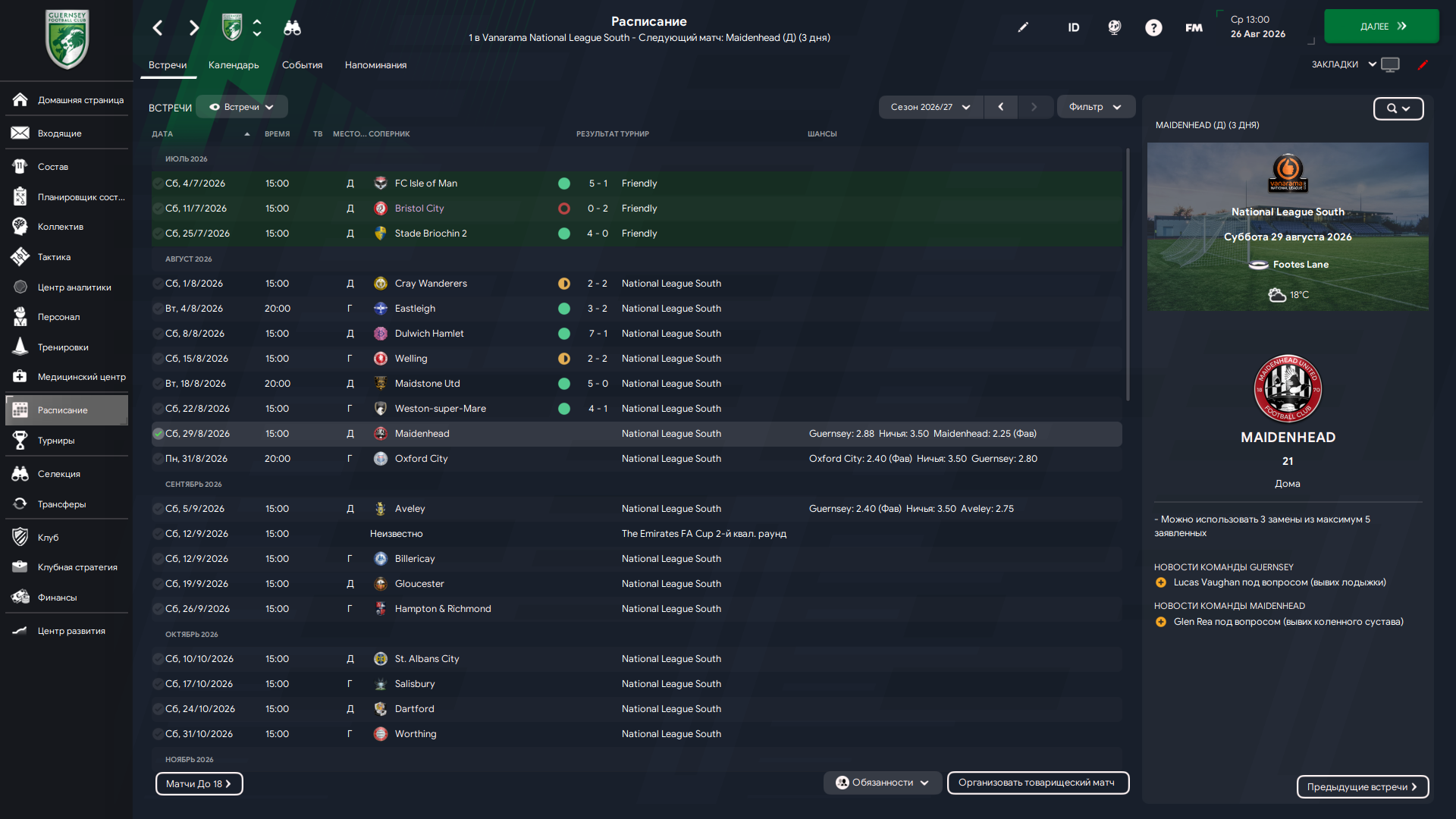 Обновлённый Гернси. Часть 5. Пара подменок и ситуация в чемпионате.