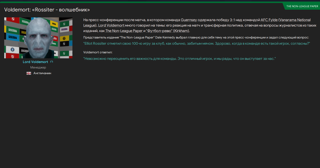Чемпион Южной Ванарамы, главный тренер, главный менеджер, надежда острова Гернси - Лорд Воландеморт.