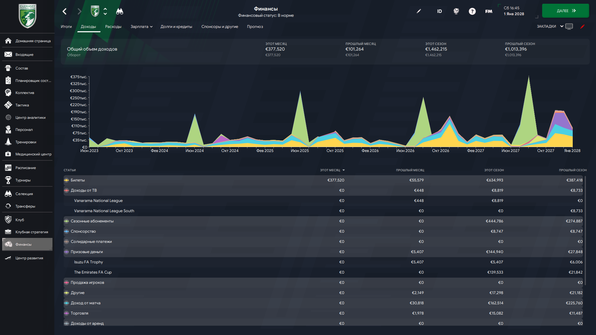 По состоянию на 7 декабря мы уже обогнали по доходу прошлый сезон, заработав миллион евро с копейками, буквально на несколько тысяч правда, но впереди вторая половина сезона, выезд к Эвертону, Исузу кап.
