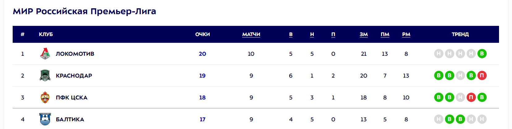 Международный центр спортивных исследований (CIES) представил рейтинг клубов Российской Премьер-Лиги по количеству игрового времени, предоставленного собственным воспитанникам в сезоне-2025/2026. Так, лидером чемпионата является московский «Локомотив» с показателем 34,7%. На втором месте находится ПФК ЦСКА, воспитанники которого провели в составе клуба 31,7% от всего игрового времени. Тройку лидеров замыкает «Краснодар». Его воспитанники сыграли 28,5% от общего числа минут.