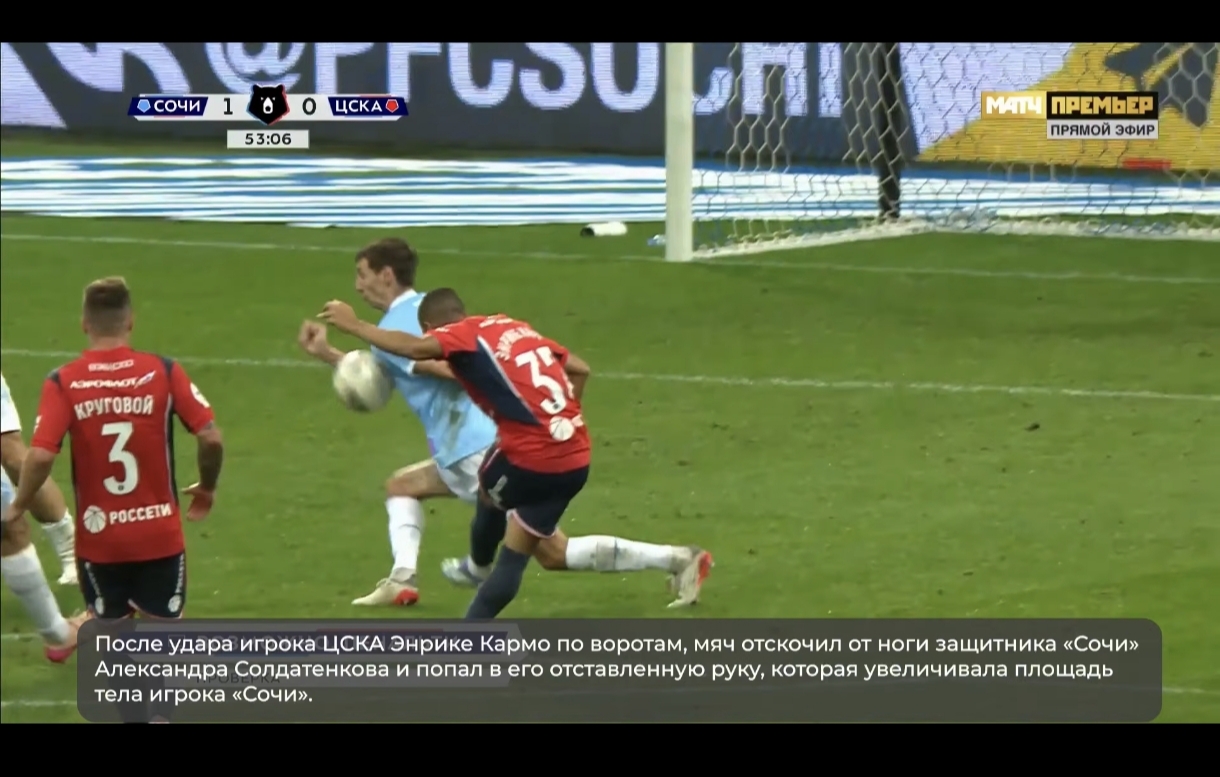 Экспертно-судейская комиссия (ЭСК) РФС признала ошибочным назначение пенальти в ворота «Акрона» в матче против ЦСКА, который состоялся 24 августа 2025 года, посчитав игру рукой защитника ненаказуемой, так как рука находилась в естественном положении при выпрыгивании за мяч