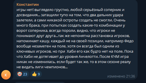 Про защиту даже говорить не буду, её просто нет. Рюдигер деградирует, Алаба сбитый летчик, Асенсио это просто шутка откровенная, Милитао еще до травм чередовал одну нормальную игру с тремя абсолютно блеклыми, а Хейсена взяли только из-за игры ногами. В воздухе он полный ноль