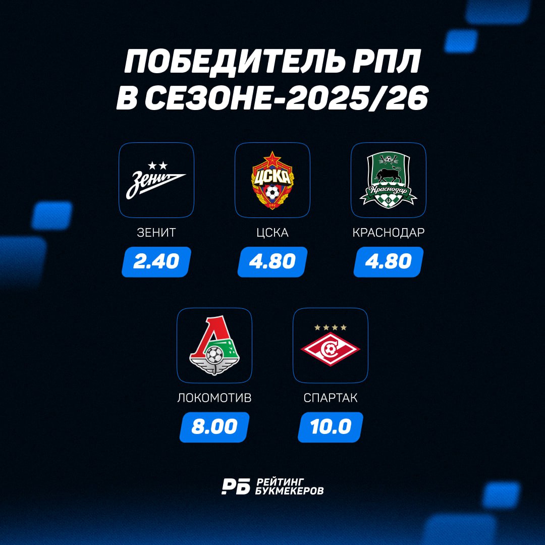 Букмекеры после очередного тура РПЛ обновили котировки на чемпионство. «Зенит» даже после осечки в Тольятти идет главным фаворитом лиги и доминирует в линии над конкурентами.