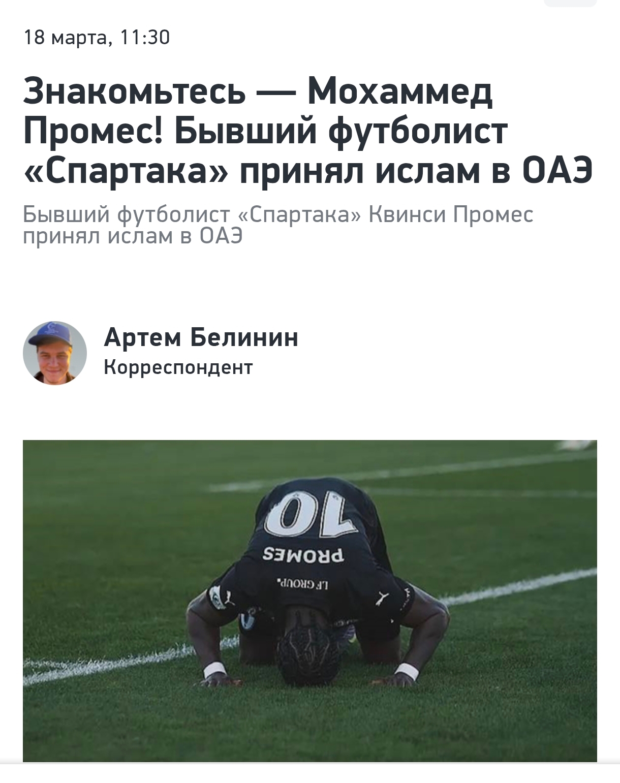 >>3406976 Ислам он принял уже у арабов. Когда Промес числился в ростере Спартака, бакаева уже не было. Умяров хоть татарин, но не подает признаки муслима. Я даже в инсте постов от него на мусульманские праздники не помню.
