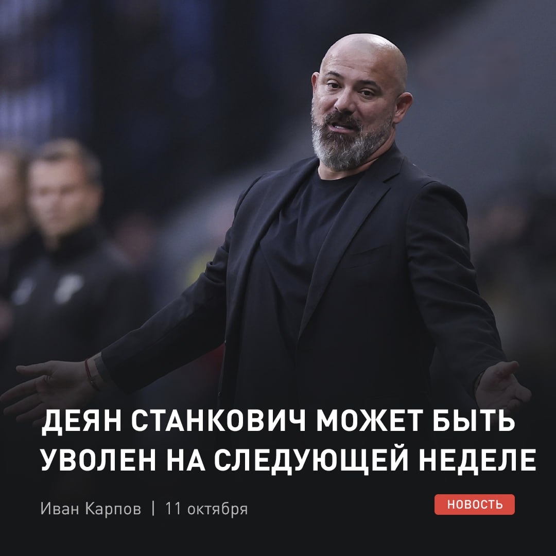 ⚡️ Деян Станкович остаётся главным тренером «Спартака»: на сегодняшнем заседании совета директоров красно-белых было принято решение не увольнять серба. После 11 туров нового сезона москвичи идут на 6-м месте в таблице РПЛ, отставая от лидирующего ЦСКА на 6 очков: Станкович уже 4 матча не руководит командой из-за дисквалификации — «СЭ»