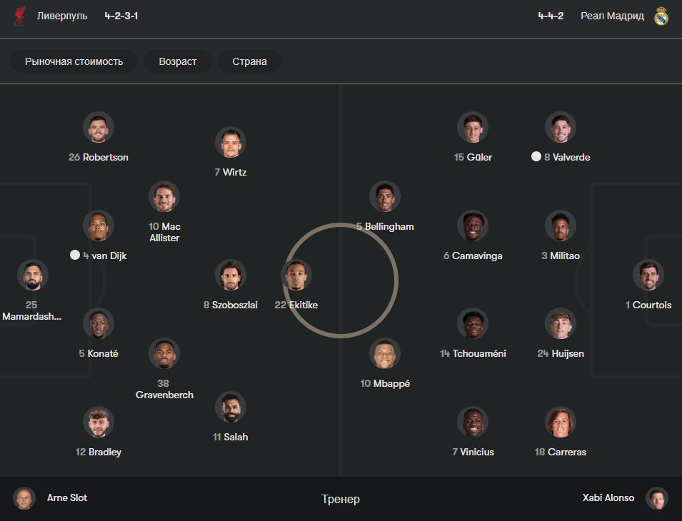 Салах, Вирц в старте. Собослай не райбек, нету Исака.
