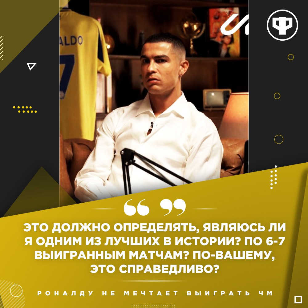 Не мечтаю о победе. Говорят: «Криштиану станет величайшим, если выиграет». Не согласен, у меня уже 3 трофея с Португалией. До Месси у Аргентины было 2 победы
