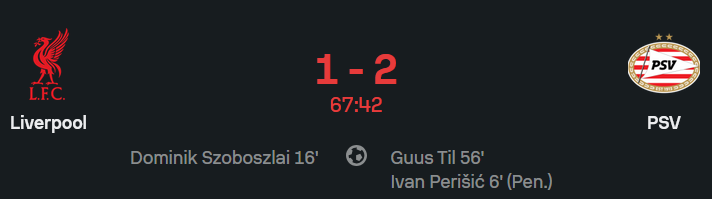 >>3415960 АХАХАХ, бля, как стоило заменить древнего Перишича на молодого Дристюша какого-то, так он сразу же сделал дубиль в ворота Говнопуля. А представьте, если бы в ПСВ играли люди уровня Мемфиса Депая или Максима Лестьена хотя бы. Каков бы был счет???