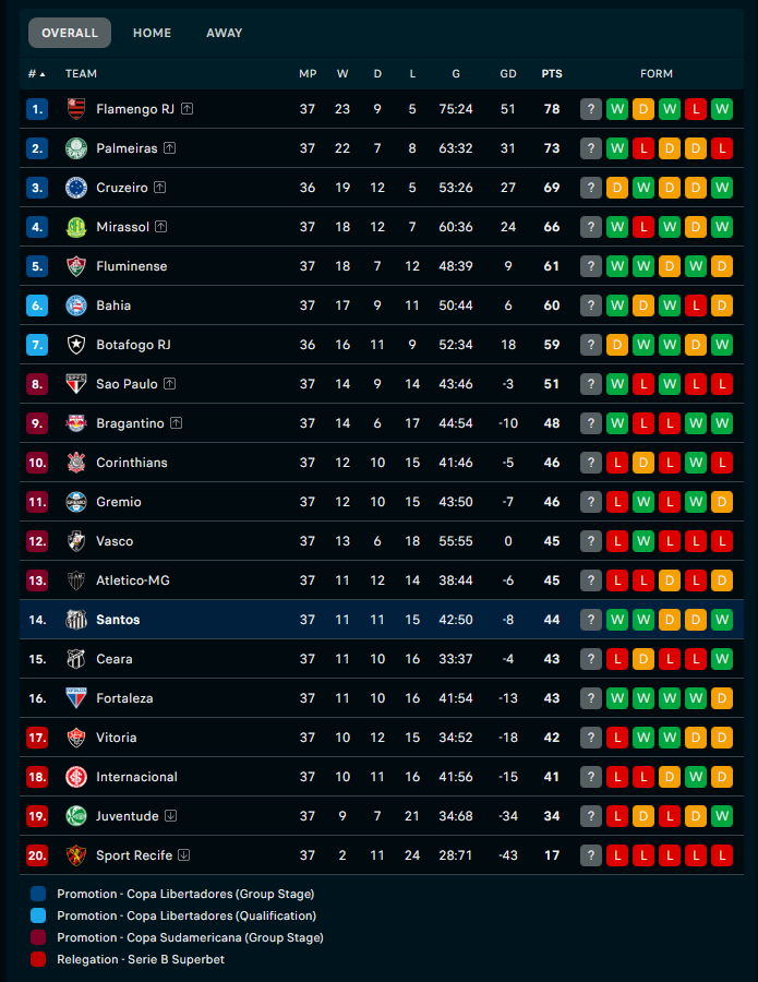 >>3417742 Тож только что чекал таблицу, кек. У Сантоса почти нет шансов вылетать. Они играют в последнем туре с Крузейро, которому нихуя не надо + крузейро сегодня ещё матч проводит, так что будет уставшим.