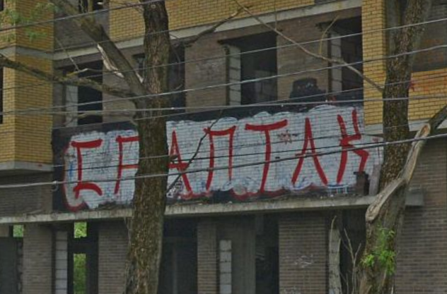 Сап, футбач-сукач! Сижу смотрю мутного мрака, едет он на автомобиле Ока по своему городу и взгляд мой бросается на растяжку недостроя. Признавайтесь, кто?