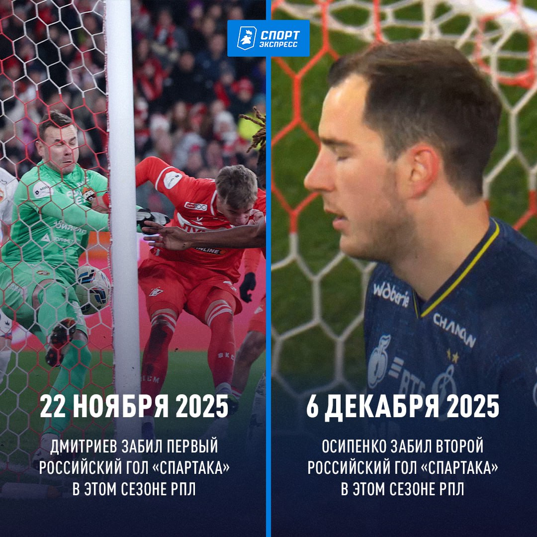 ❗️Осипенко стал лучшим бомбардиром «Спартака» среди россиян в первой части сезона РПЛ: защитник, который вообще играет за «Динамо», сравнялся по голам за «Спартак» с Игорем Дмитриевым, забив в свои ворота в дерби. Так, 24 из 26 голов «народной команды» в осенне-зимней части сезона РПЛ забили легионеры: такого показателя (92%) нет ни в одном другом клубе чемпионата России. «Спартак» закончил 2025 год на 6-м месте в РПЛ и будет отставать от лидера на 9-11 очков до весны