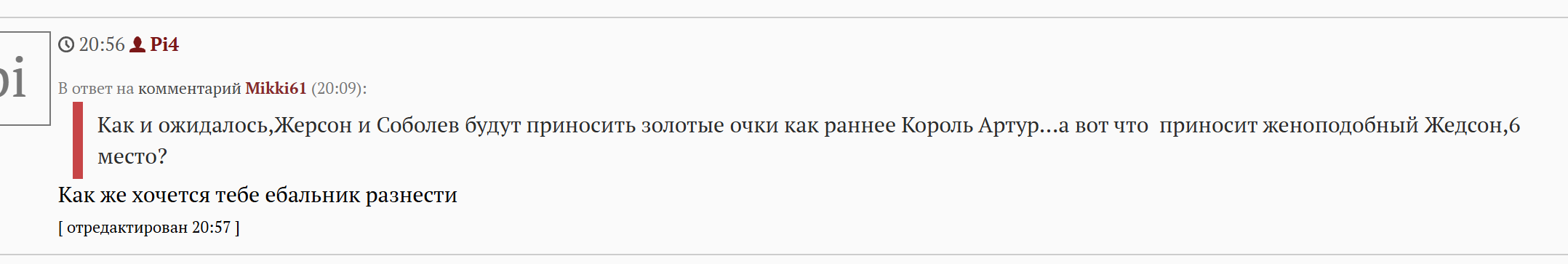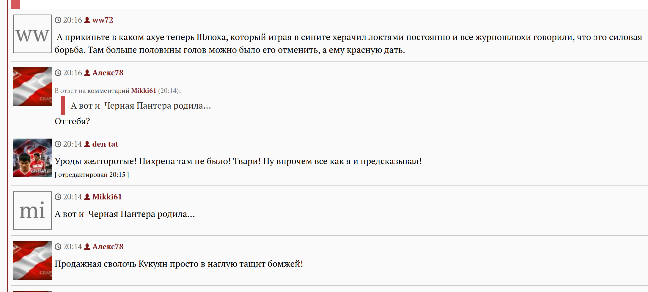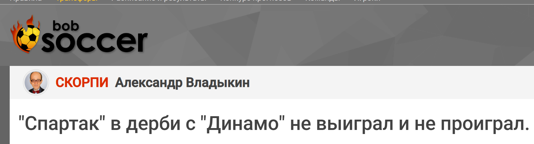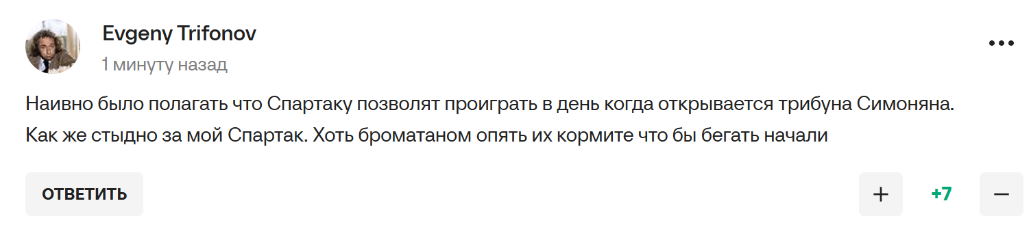 "Я же говорил х*й они выиграют"- прокомментировал игру Спартака с Динамо тренер Балтики Андрей Талалихин из своей палаты, после чего получил укол галоперидола и уснул.