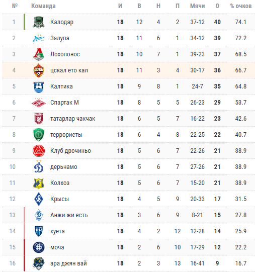 Здесь мы обсуждаем МИР - Чемпионат по футболу Великой России, пидор. Радуемся голам простых русских пацанов, таких, как: Кордоба, Бонгонда, Мойзес, Чавес, Роналдо, Мэйби Бейби и Педро. Кладём хуй на прочие убогие премьер-лиги, лиги двух команд, продажные серии и унылые чемпионаты, рассматриваем Дзюбин хуй и анус с различных ракурсов, ебём спермтаковских свиношлюх поедая 33 пельменя, давим ЦСКАЛ, катаемся на Камаро по Калифорнии, смываем зинит и ссым в ебло Ненину, ставим варди, глорим за свой клуб и делимся стопроцентными инсайрами.