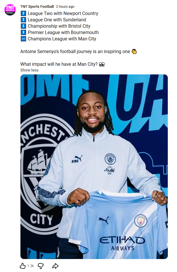 Вот и аукнулось физручку, вот и упустили шанс оторваться от Сити. А в Сити Семеньо приехал.