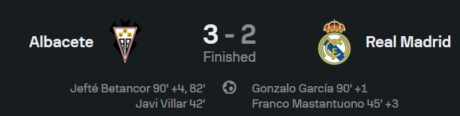 >>3427695 >Также есть матч Реал Мадрида против какого-то клуба из Сегунды Альбасете