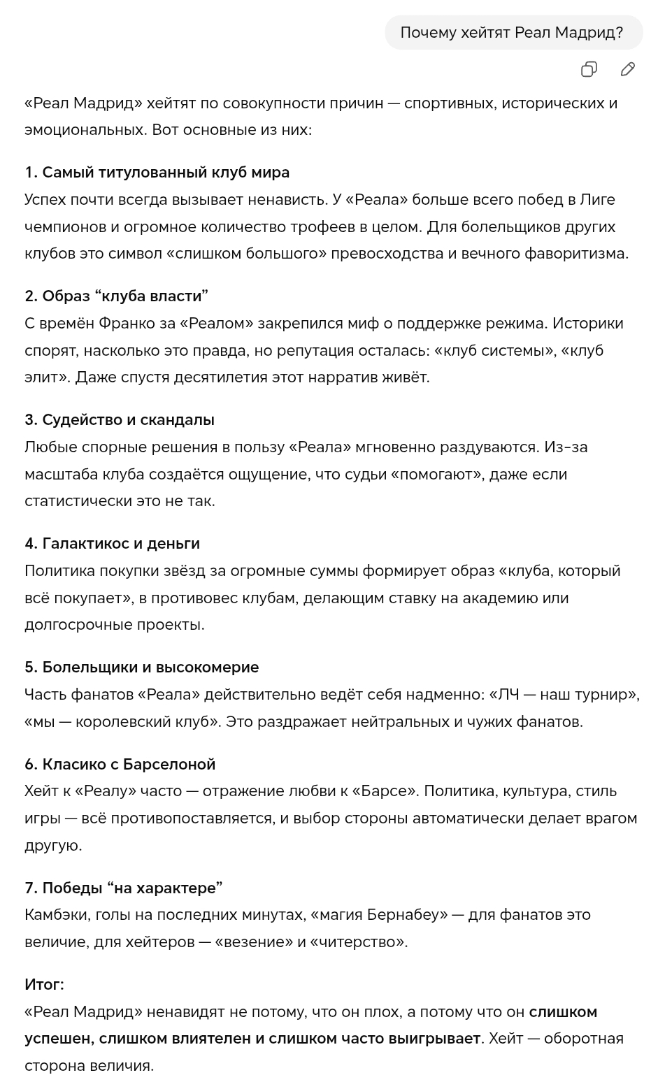 Реал просто берет сильных пацанов и тренера, который не парит им мозг и собирает Еврочашки. Перес давно хакнул футбол.