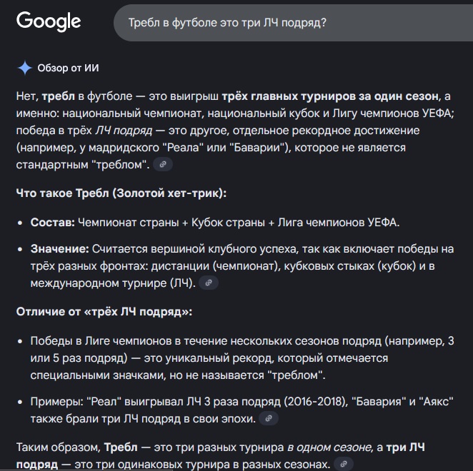 Чтоб команда могла назвать себя действительно великой, нужен требл, без этого никуда.