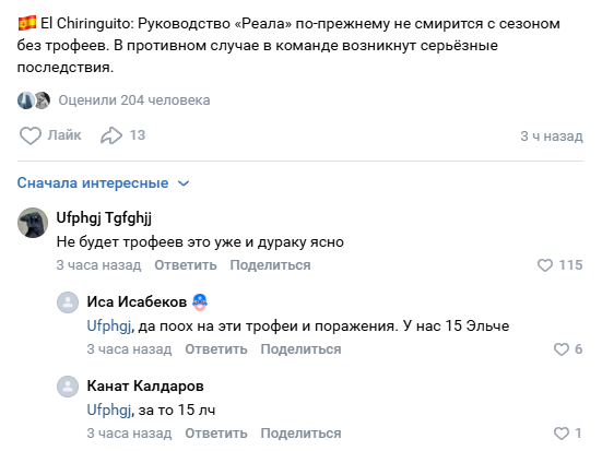 А вообще это полный пиздец. Обычно после увольнения футболисты заряжены, тут и Вальверде на родной позиции выпустили и Винисиуса не заставляли отрабатывать, в по итогу без желания играли один хуй