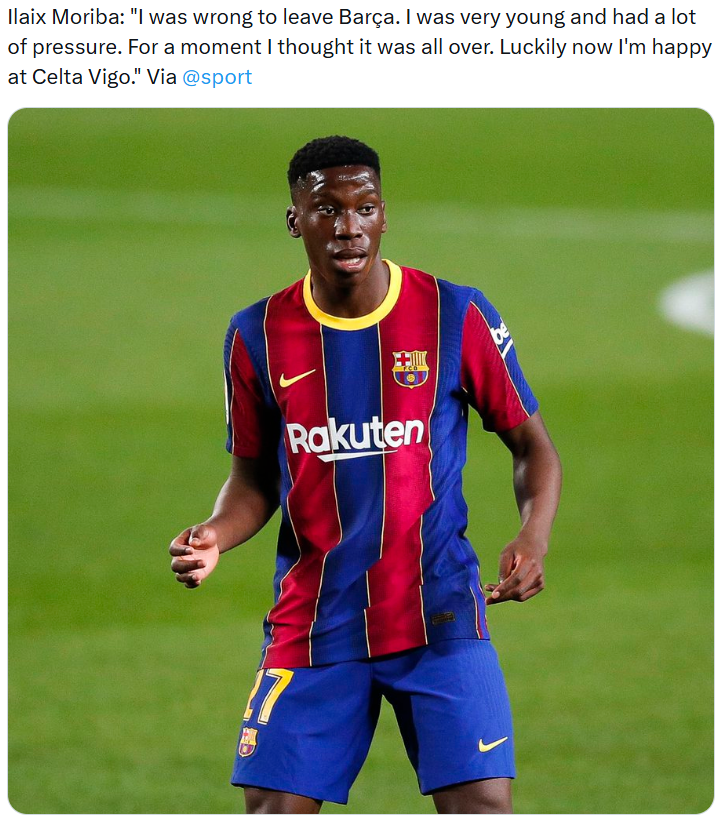 Пускай передает привет таким легендам как Хави Симмонс, Илаиш Мориба, Кубо, Гиу и прочим "вундеркиндам", которым злая Барселона мешала раскрывать свой талант :)