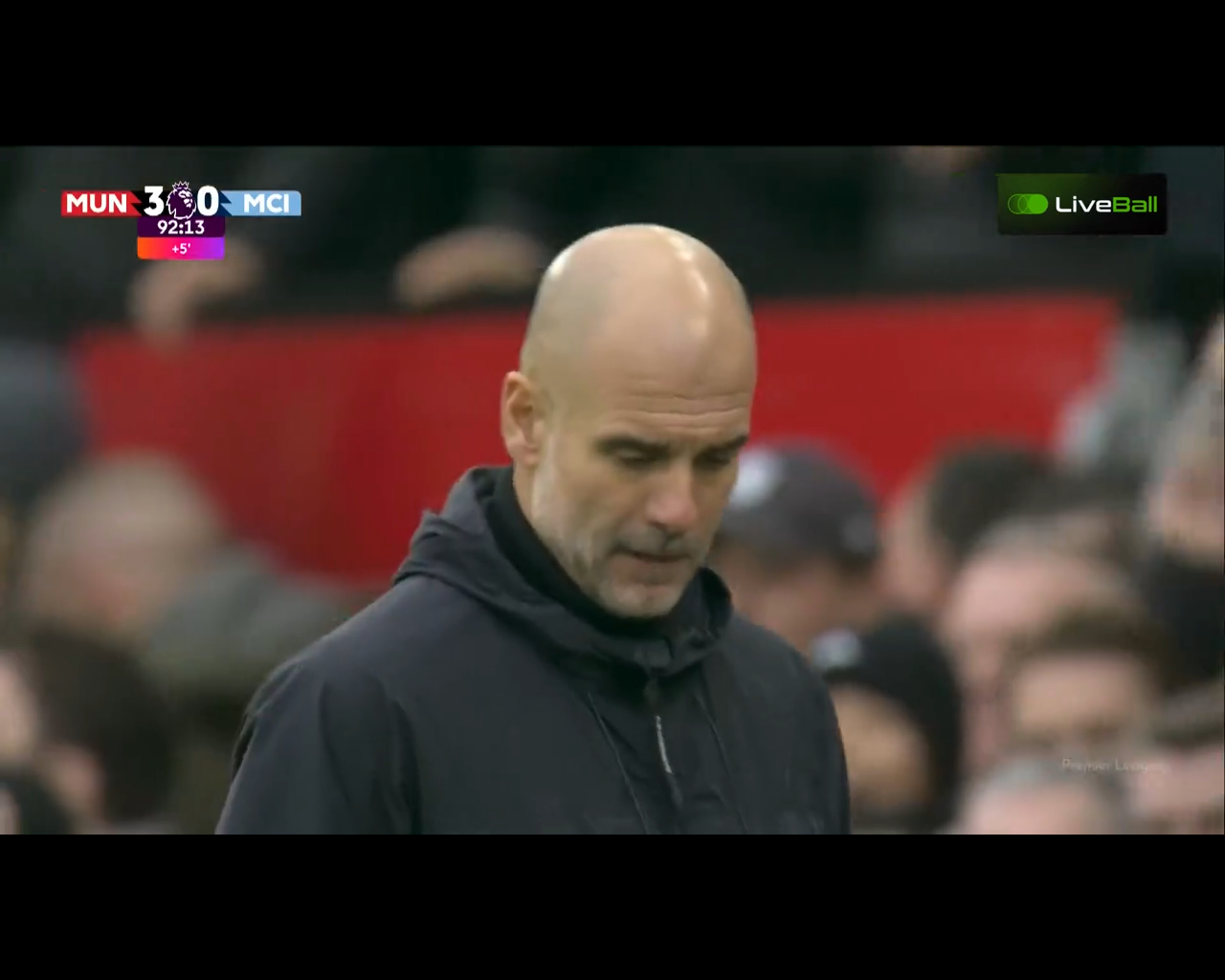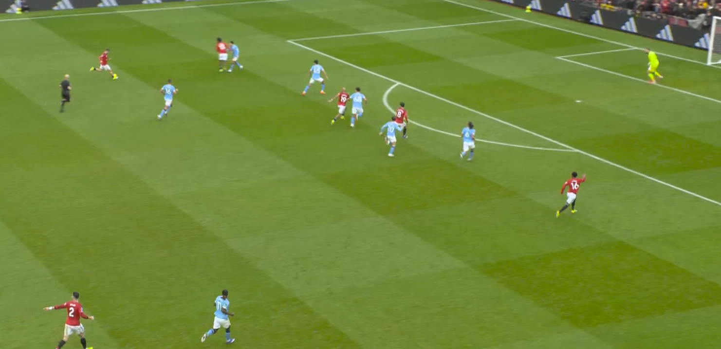 Ну пока что у Сити очень много брака, как в атаке, так и в защите. А ещё проблема в том, что защитники не могут разыгрывать мяч, Силве-2 и Родри приходится опускаться в линию к ЦЗ и разыгрывать вместо них, отчего у МЮ получается позиционное и численной преимущество на своей половине поля. Пару атак получалось только в тех случаях, когда игрок спускался, разыгрывал, мяч в центре кто-то придерживал, и Силва\Родри успевали вернутся, как бы играя за двоих.