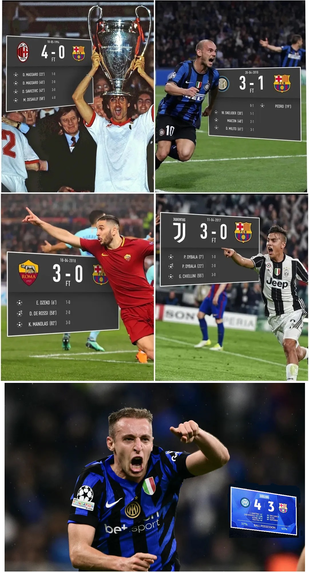 только когда через год с лишним (сначала не верили своим глазам, думали это какая то ловушка) все поняли что у этой Барсы нет обороны, ну то есть она не то что слабая, а её НЕТ ВПРИНЦИПЕ, то бомжи лалиги начали даже свою половину поля переходить и выбегать в контратаки.