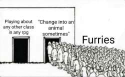 >>236227 Антропоморфных разумных животных! ЭТО ВАЖНО! Прогрессивныее друзья/знакомые - знают, у меня и без фуррей тараканов в голове хватает. Нормисы у которых цель жизни залететь/обрюхатить и жить до следующей зп. - очевидно, что нет.
