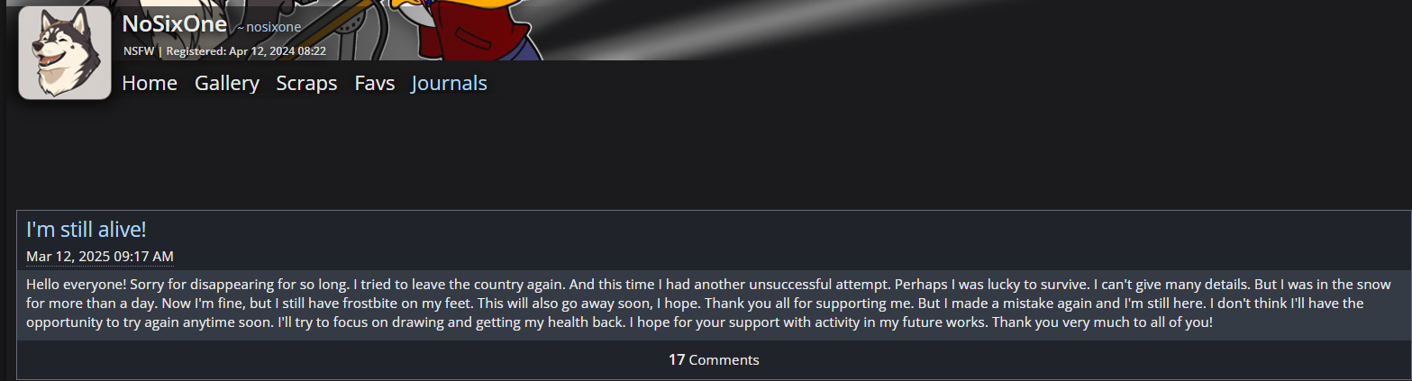А еще я смотрю он и с ешки выпилился. Из того что мне известно, самое крупное собрание сочинений которое можно найти от него, лежит на е-хентае.