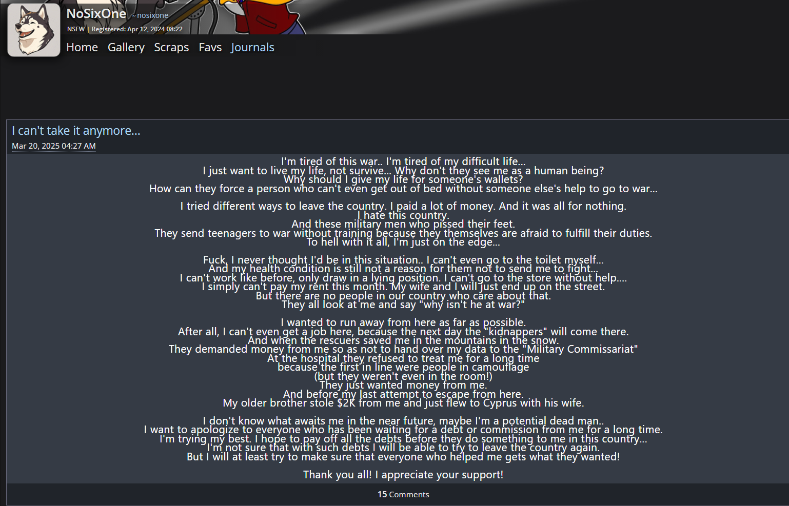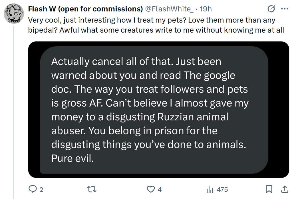 Когда завёл патреон и стал получать более-менее вменяемые деньги за своих гомособакенов, к нему постепенно пришло понимание, что так себя вести перед потенциальными клиентами нельзя, так что в последние лет десять мудачества у него поубавилось.