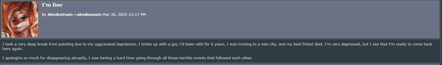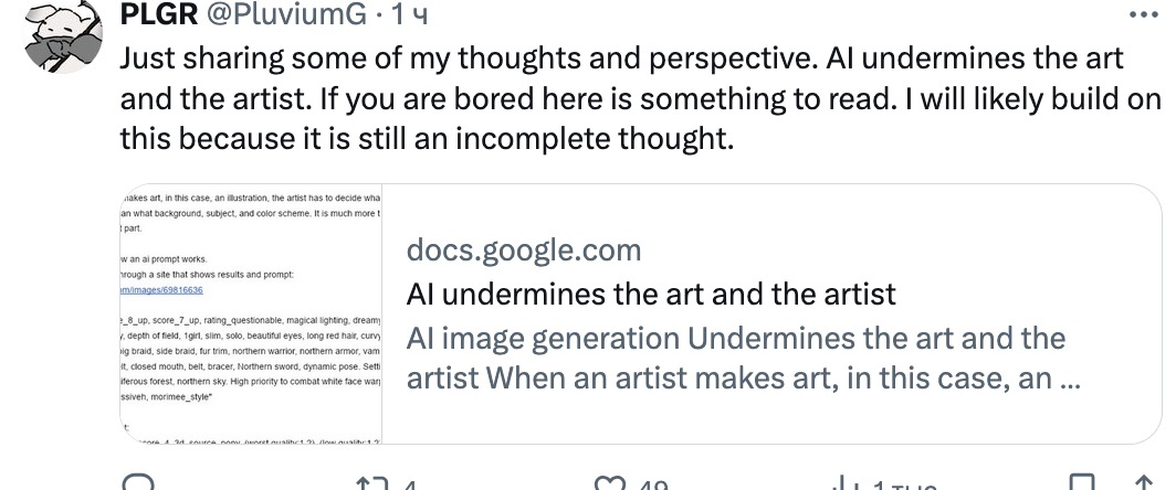>>395953 >Уже не взлетит, слишком устоявшаяся репутация гнезда педофилов. Ну как сказать, он-то как раз уже взлетел и летит. Это по факту единственная живая альтернатива ФА, но да репутация не позволит ему стать заменой (хотя после разрешения ИИ там теперь разбавлено нейронщиками и беглыми покемонорисоваками после запрещения части покемонов на ФА, так что хз как он развиваться будет).