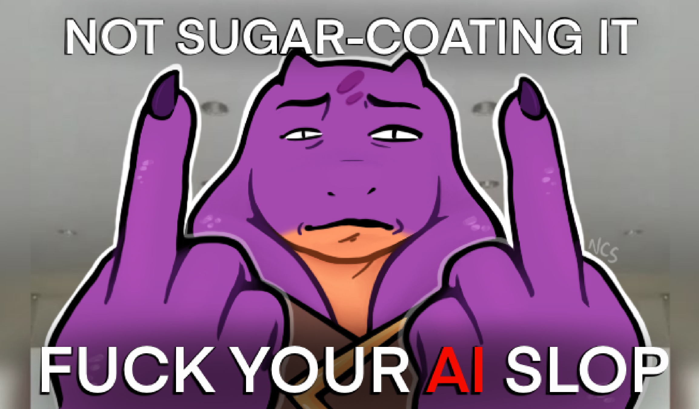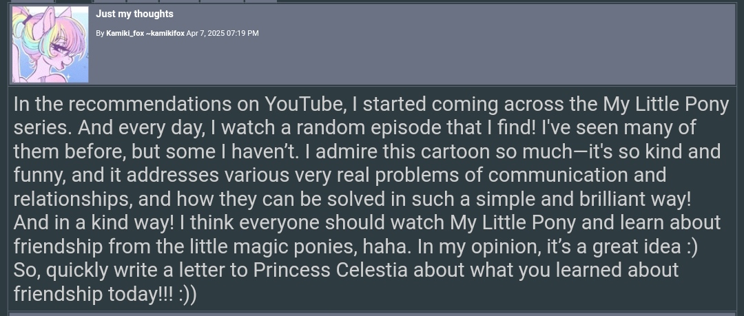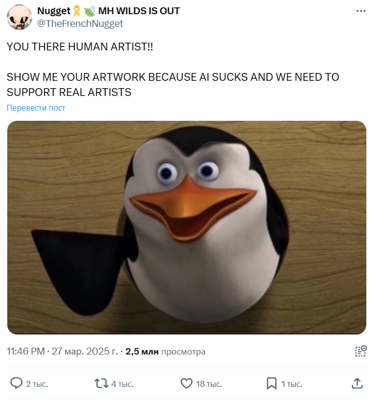 >>395106 Когда такого рода призывы и лозунги (политические, социальные, просто злобные) вкладывают в рот понечкам - это уже выглядит кринжово. Здесь оно еще и выполнено максимально бездарно - этот жирный контур спич бабла, который даже поленились нарисовать от руки, этот шрифт, эта грамматика. Фу. ИИ сделал бы лучше.